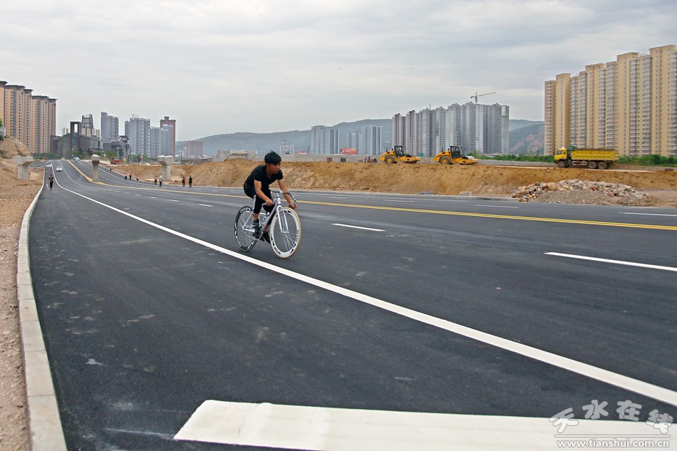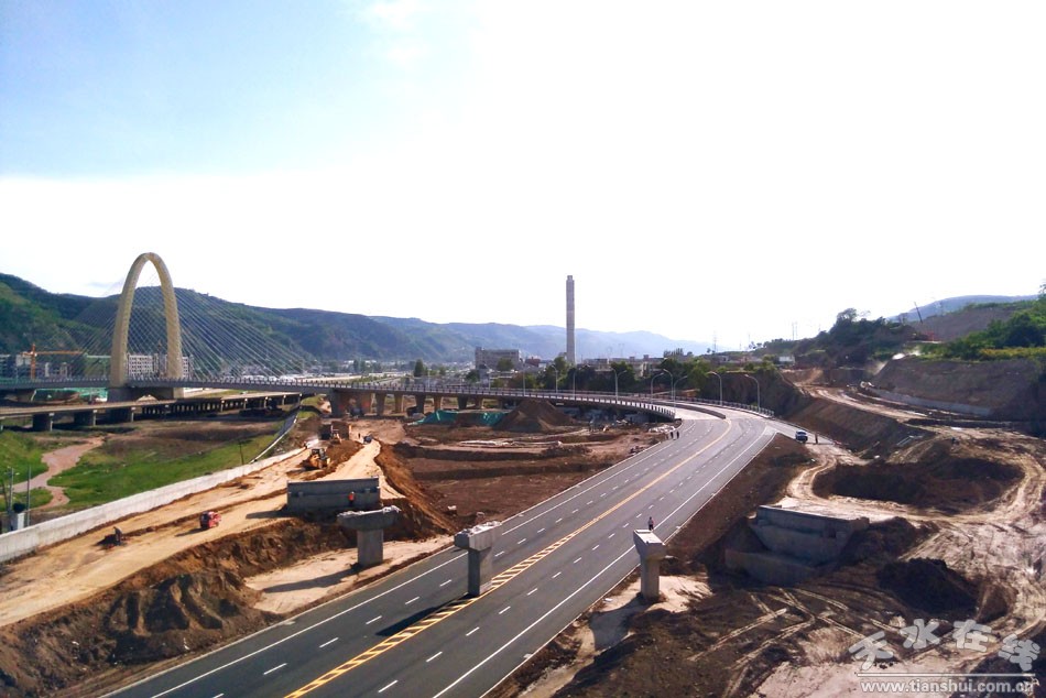 在通過(guò)大橋到達(dá)藉河南岸后可以看到,天潤(rùn)橋的南引橋即將與正在建設(shè)的秦州大道連接,以后還將和正南方向的平峪大道連接,形成一個(gè)十字路口。