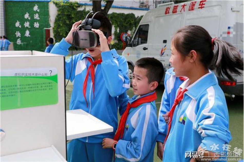 5月28日,2018年甘肅省“科普大篷車天水行”系列巡展活動走進(jìn)天水市新華門小學(xué),一名同學(xué)正在體驗(yàn)VR眼睛。