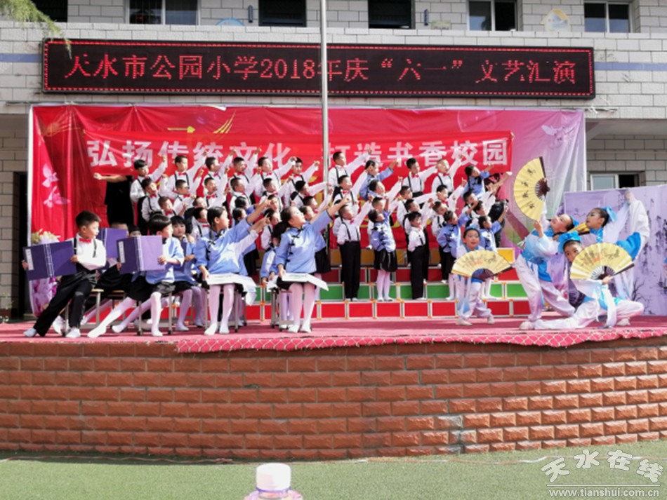 5月31日,天水市公園小學(xué)舉辦“慶六一”文藝匯演,同學(xué)們通過自編自演的節(jié)目,展現(xiàn)“書香校園”建設(shè)成果。