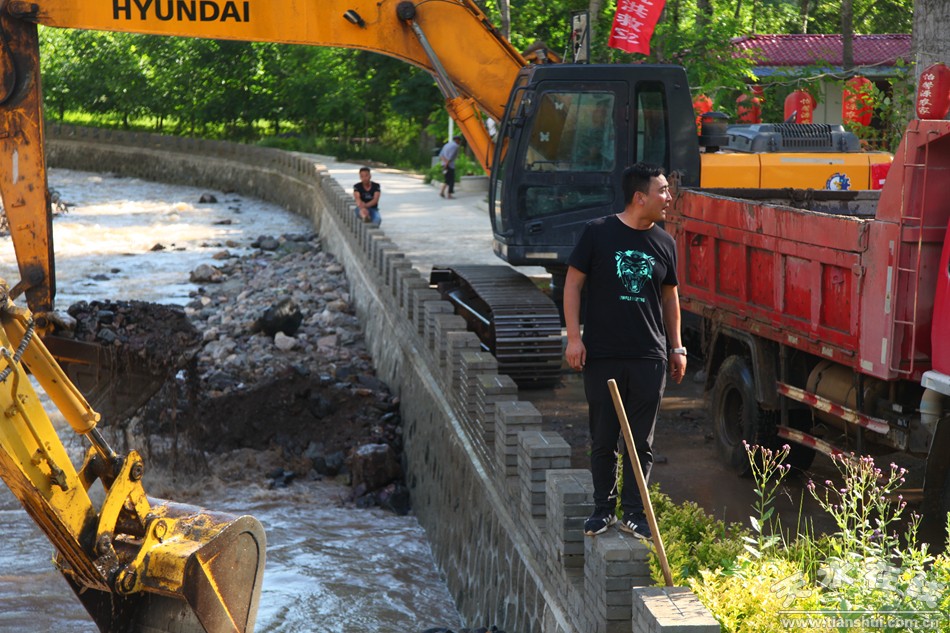 采訪中令記者不解的是:高爐子村里怎么會有工程機(jī)械?甄東鵬的回答讓我們切實(shí)感受到了什么是“未雨綢繆”。原來,6月份的一場降雨之后,甄東鵬就隱隱覺得今年村上有發(fā)生山洪的可能性。他與其他幾個(gè)村干部一商量,決定提前著手,做好防汛準(zhǔn)備。