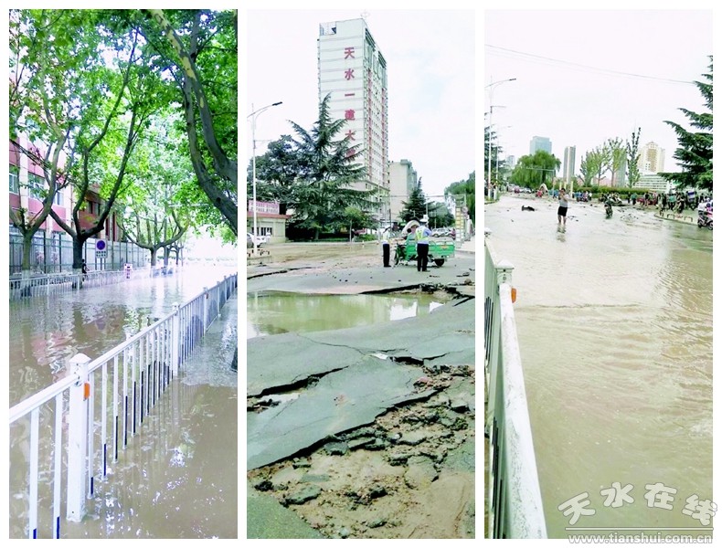 管道爆裂后,市自來(lái)水公司聞?dòng)嶊P(guān)閉了自來(lái)水管道閥門,并組織人員立即對(duì)破損管道進(jìn)行搶修。交警、建設(shè)部門組織人員,對(duì)該區(qū)域道路進(jìn)行了封閉和交通疏導(dǎo),同時(shí)采取了抽水措施,清除周邊道路積水,并對(duì)路面淤泥進(jìn)行了清理。供電、天然氣、通訊等單位也組織搶修人員對(duì)事發(fā)路段的管線進(jìn)行了檢修,確保電力、燃?xì)、通迅設(shè)施安全。據(jù)了解,爆裂的自來(lái)水管道埋設(shè)于1993年,已使用了25年。