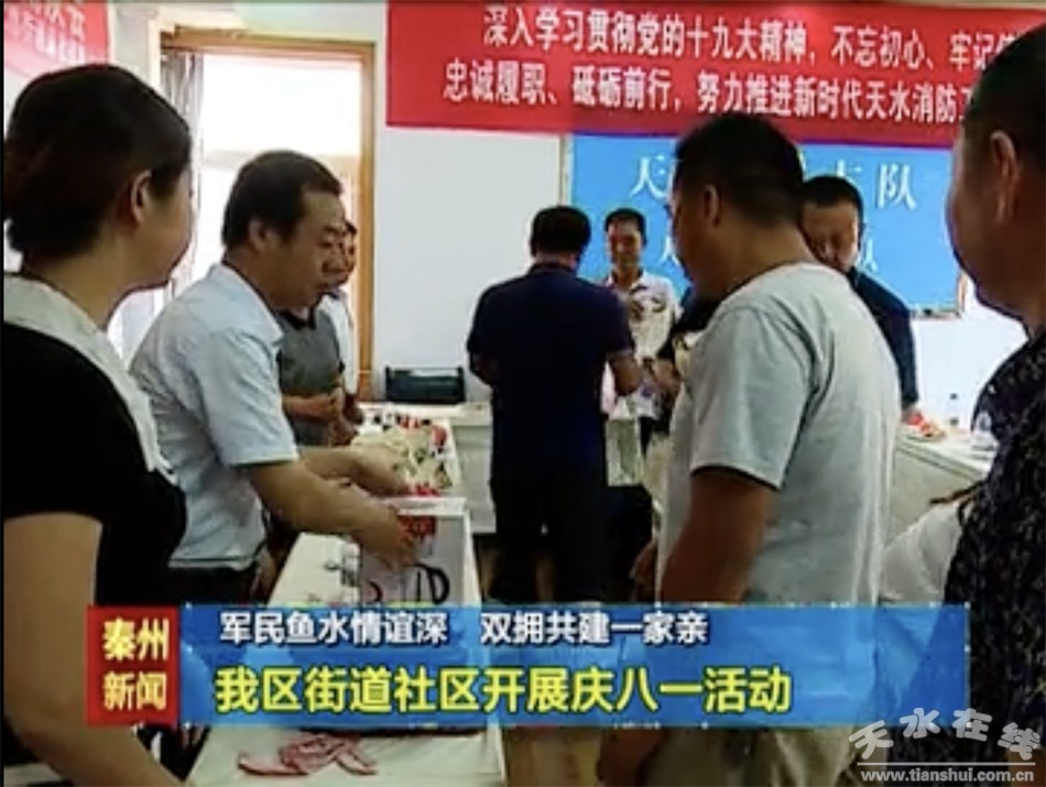 在天水郡瀛池社區(qū)慶八一暢談會(huì)中,來(lái)自社區(qū)的黨員干部、擁兵模范、居民代表等與消防官兵、退伍老兵齊聚一堂,大家暢所欲言、暢敘軍民魚(yú)水情,消防官兵與參戰(zhàn)老兵紛紛發(fā)言,一起回憶在軍隊(duì)的青春歲月與艱苦奮斗的經(jīng)歷,表示愿為街道的發(fā)展貢獻(xiàn)出自己的一份力量;顒(dòng)中,傭兵代表為消防官兵們送上了社區(qū)居民自發(fā)組織籌集的手套、鞋墊、沐浴液等日常用品,表達(dá)居民對(duì)官兵們節(jié)日的祝福與支持。
