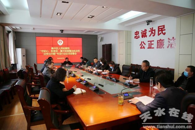 近日,秦州區(qū)人民檢察院召開“守初心、擔(dān)使命,集中排查整治執(zhí)法司法突出問題”專項(xiàng)行動動員部署學(xué)習(xí)會議,黨組書記、檢察長高保德主持會議,黨組成員以及各部、室負(fù)責(zé)人參加會議。