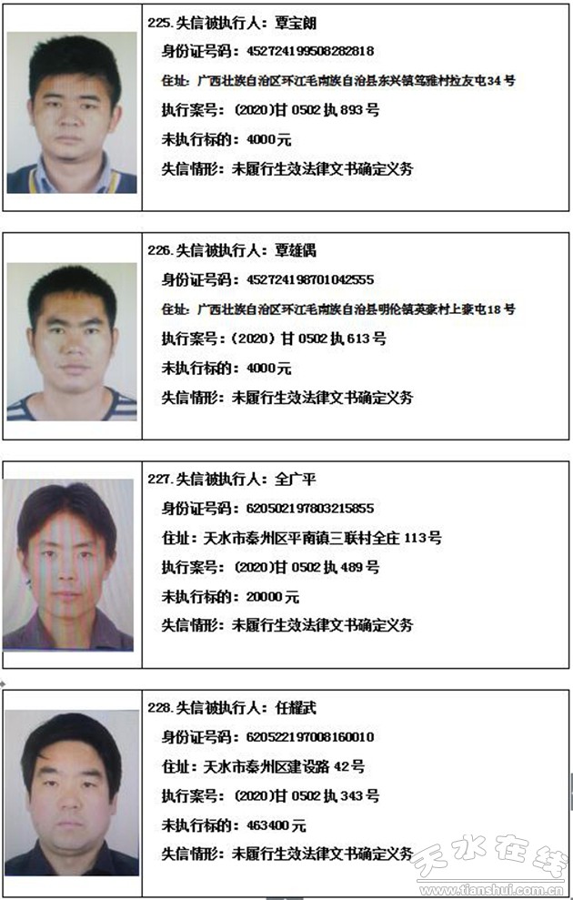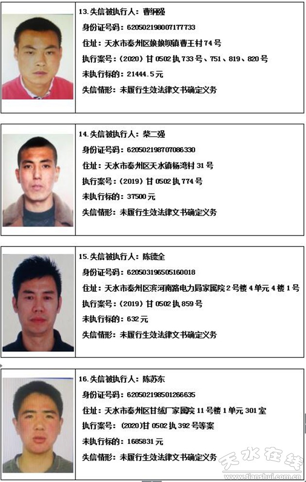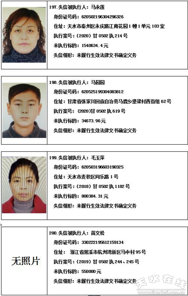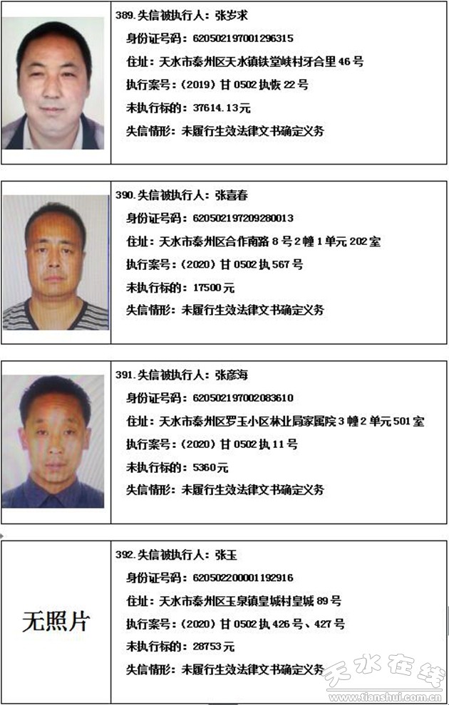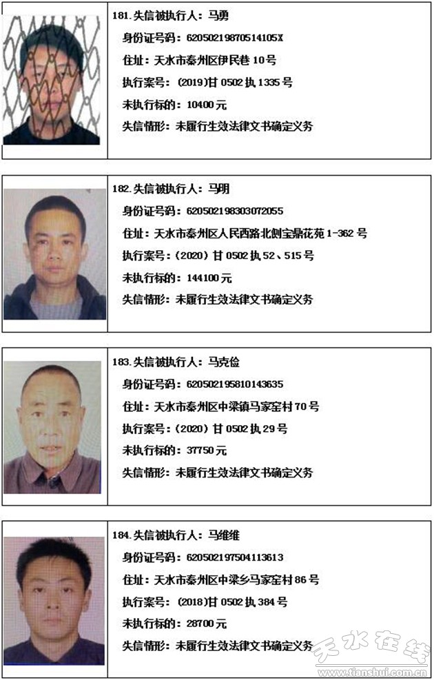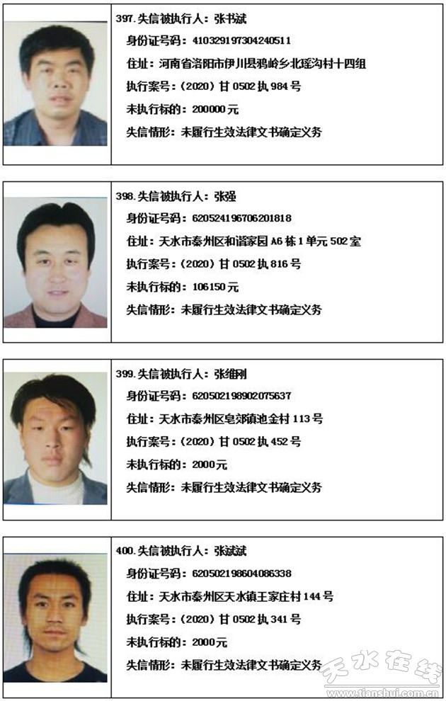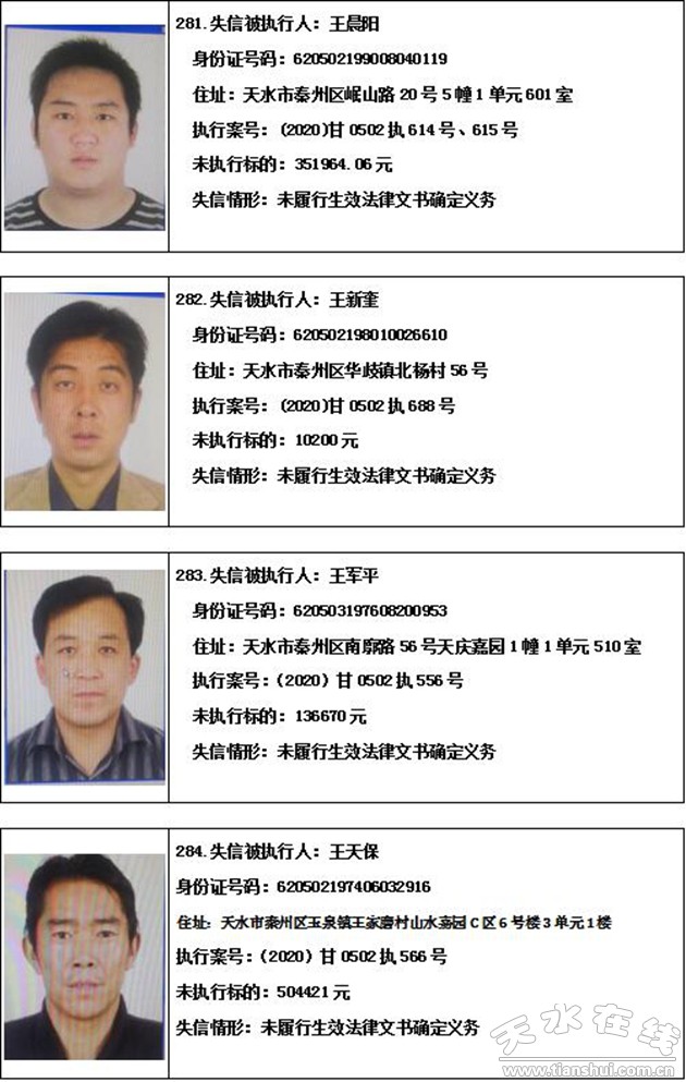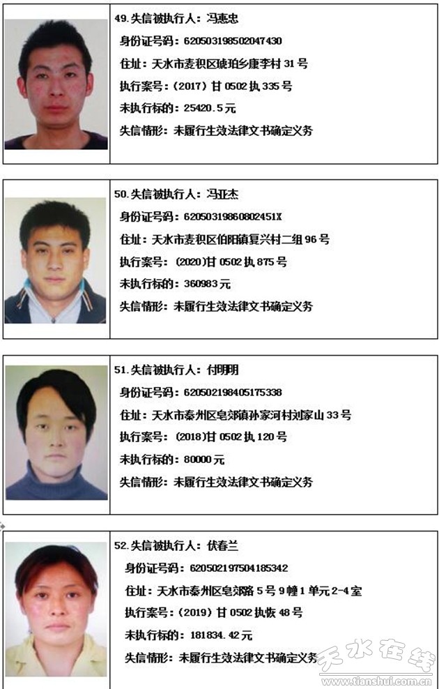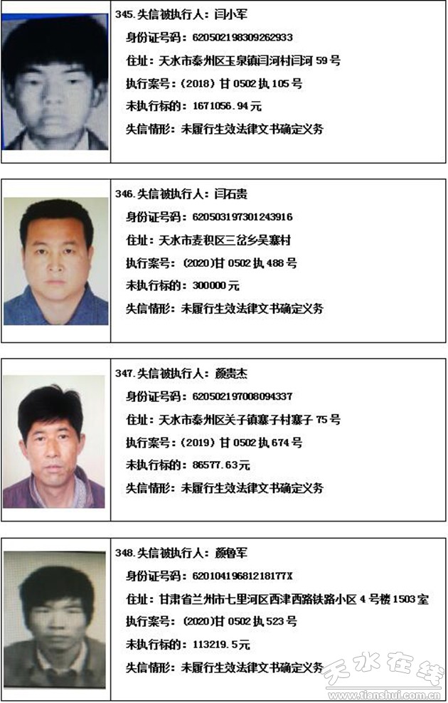 為進(jìn)一步制裁規(guī)避執(zhí)行行為,保障勝訴當(dāng)事人的合法權(quán)益,推進(jìn)社會誠信體系建設(shè),依照《中華人民共和國民事訴訟法》、《最高人民法院關(guān)于公布失信被執(zhí)行人名單信息的若干規(guī)定》等法律、司法解釋的有關(guān)規(guī)定,現(xiàn)對一批已進(jìn)入執(zhí)行程序,且尚未全部履行義務(wù)的被執(zhí)行人進(jìn)行媒體曝光,并敦促所有被執(zhí)行人自覺履行生效法律文書確定的義務(wù),通告如下:
