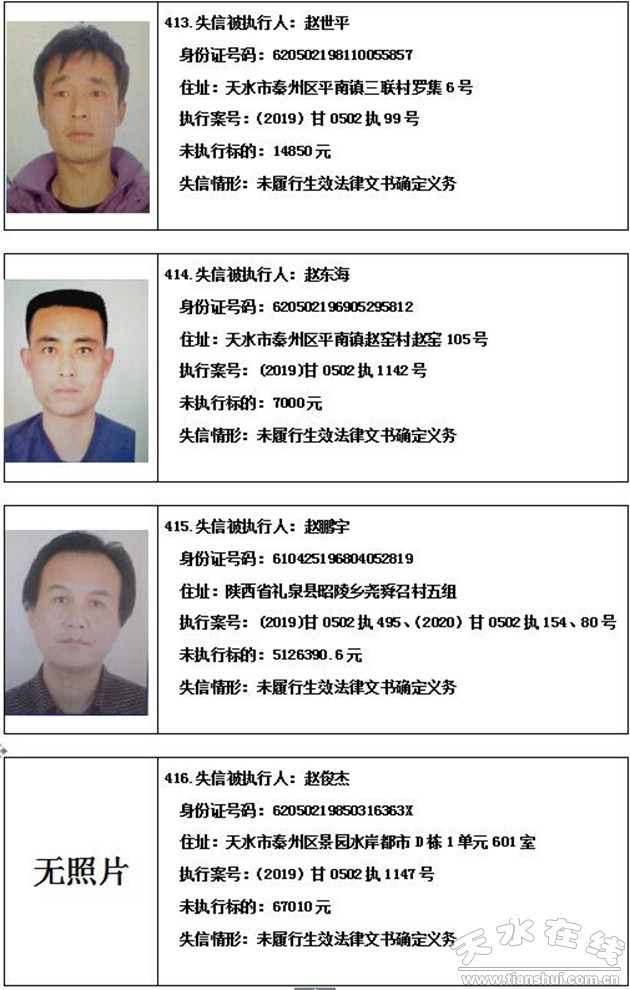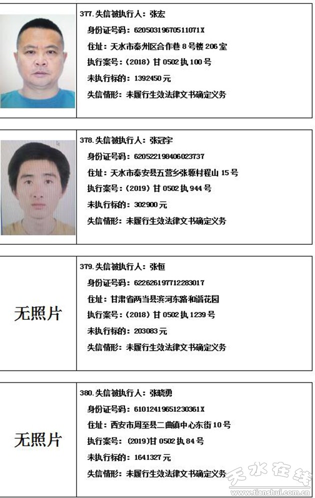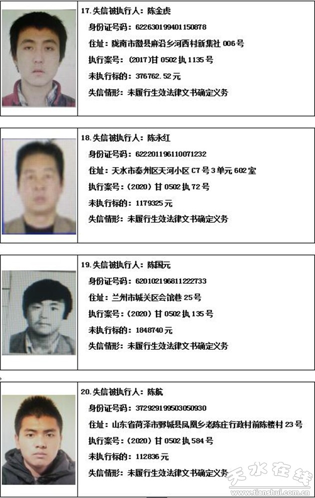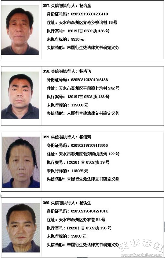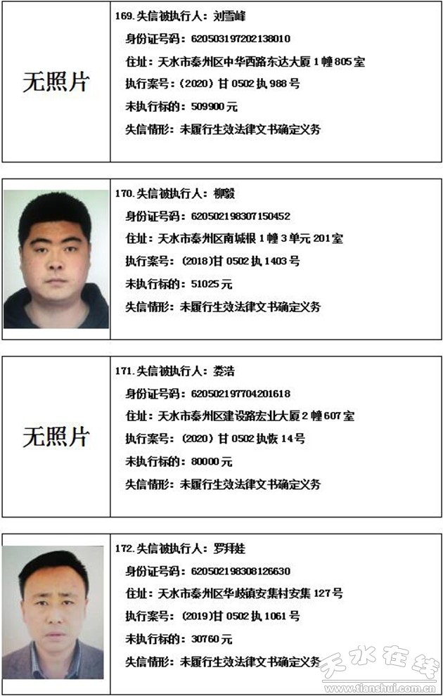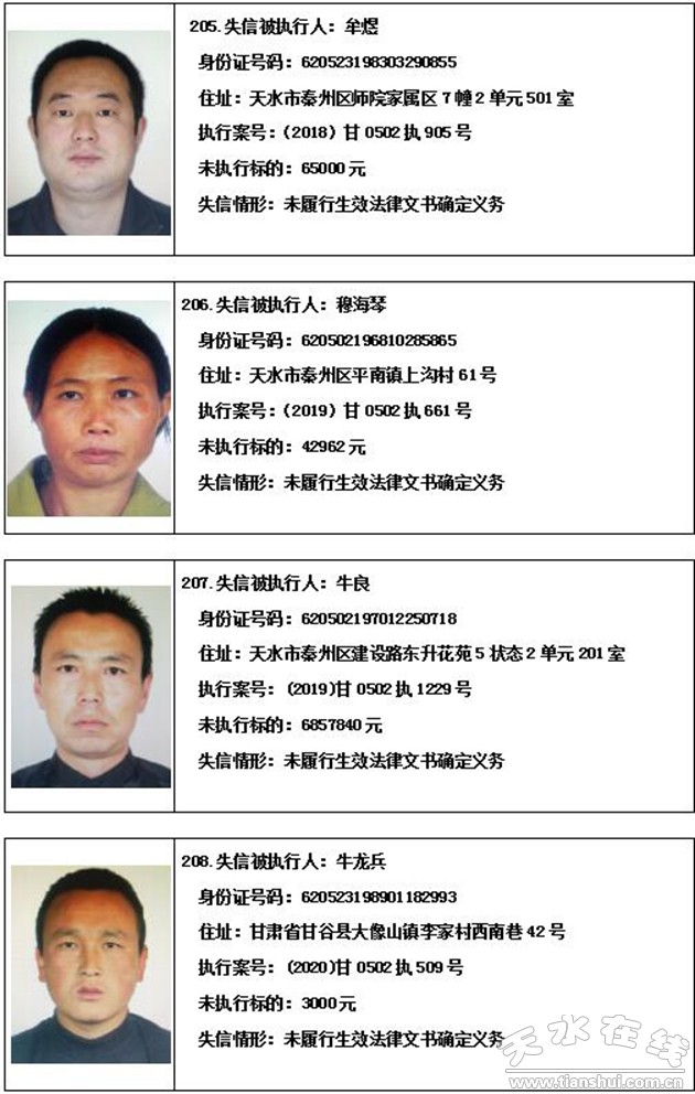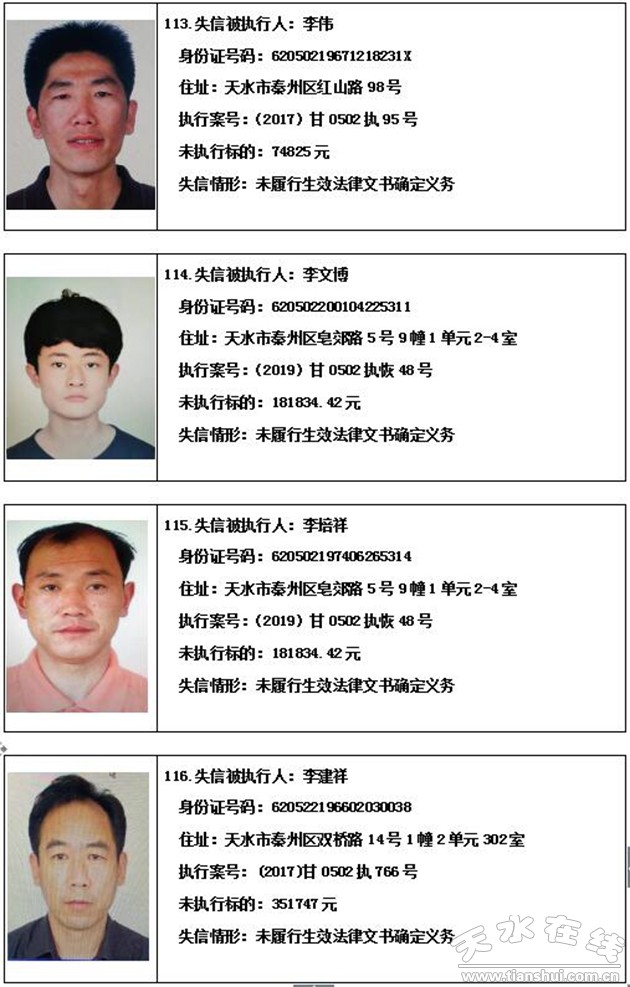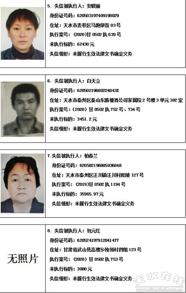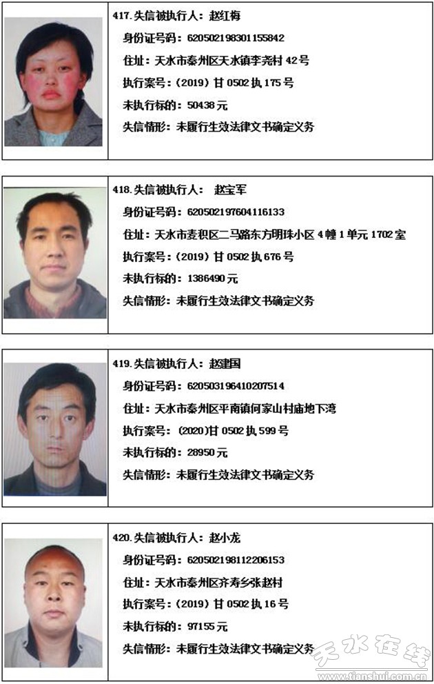 為進(jìn)一步制裁規(guī)避執(zhí)行行為,保障勝訴當(dāng)事人的合法權(quán)益,推進(jìn)社會誠信體系建設(shè),依照《中華人民共和國民事訴訟法》、《最高人民法院關(guān)于公布失信被執(zhí)行人名單信息的若干規(guī)定》等法律、司法解釋的有關(guān)規(guī)定,現(xiàn)對一批已進(jìn)入執(zhí)行程序,且尚未全部履行義務(wù)的被執(zhí)行人進(jìn)行媒體曝光,并敦促所有被執(zhí)行人自覺履行生效法律文書確定的義務(wù),通告如下:
