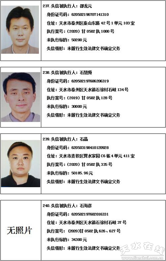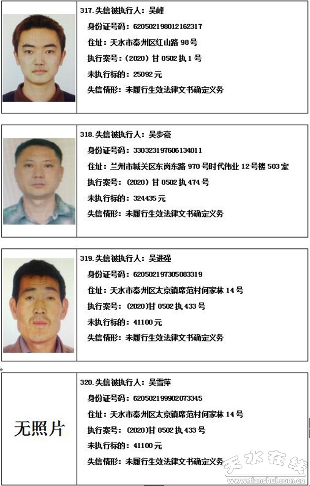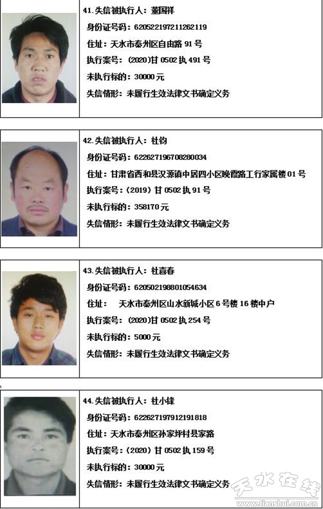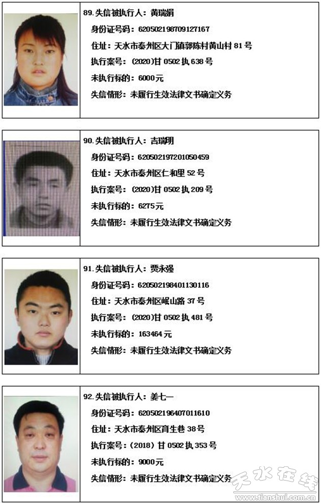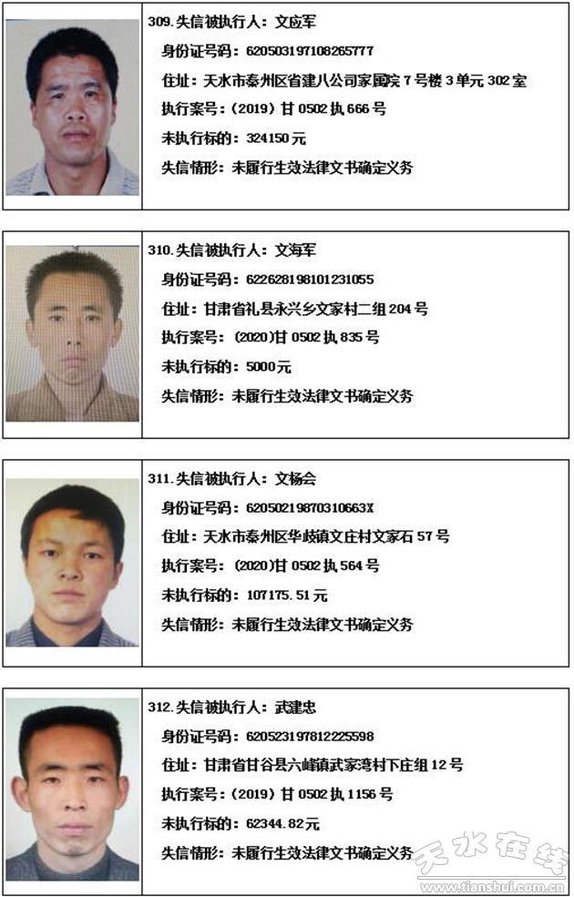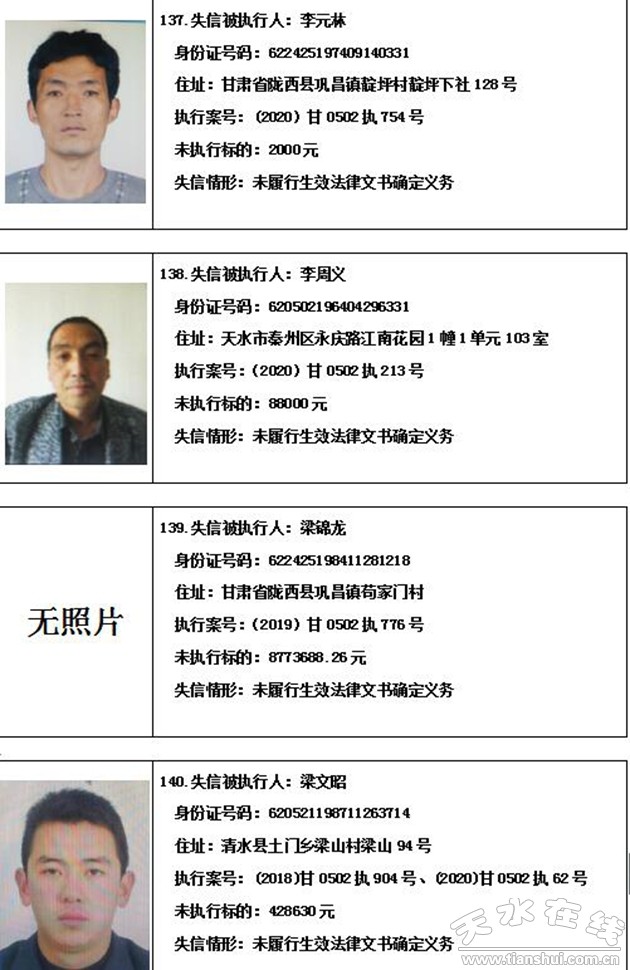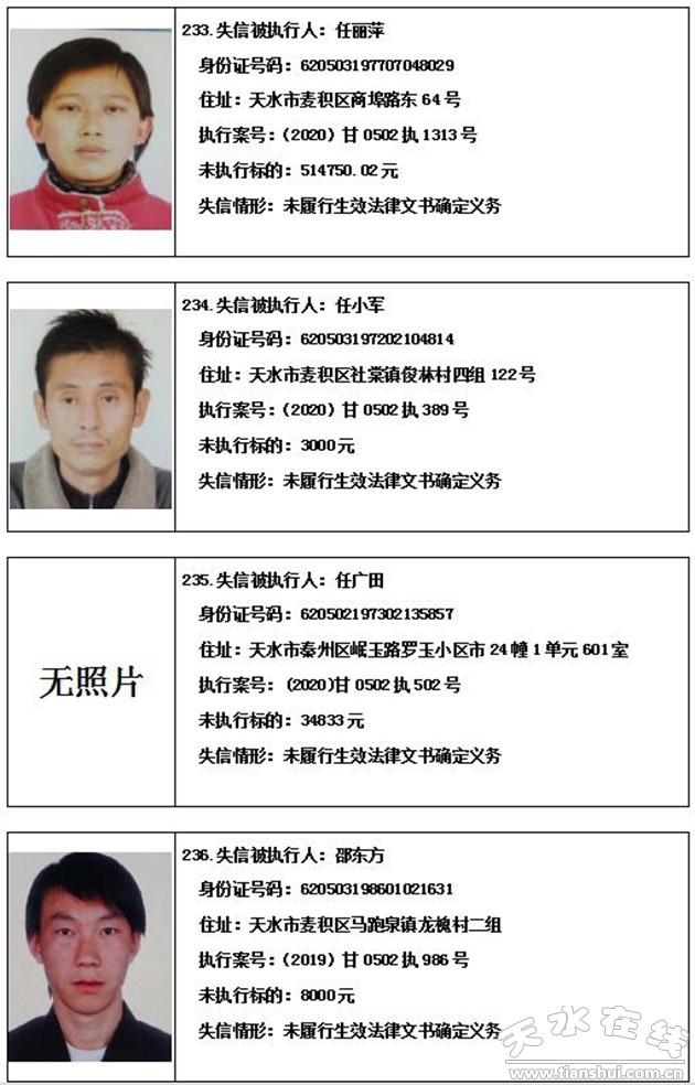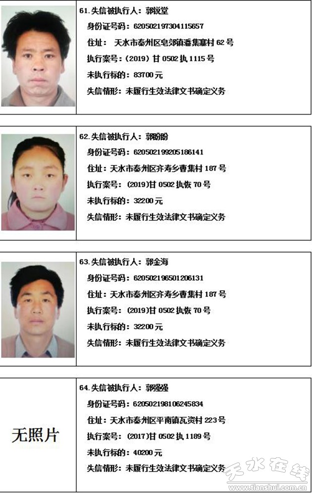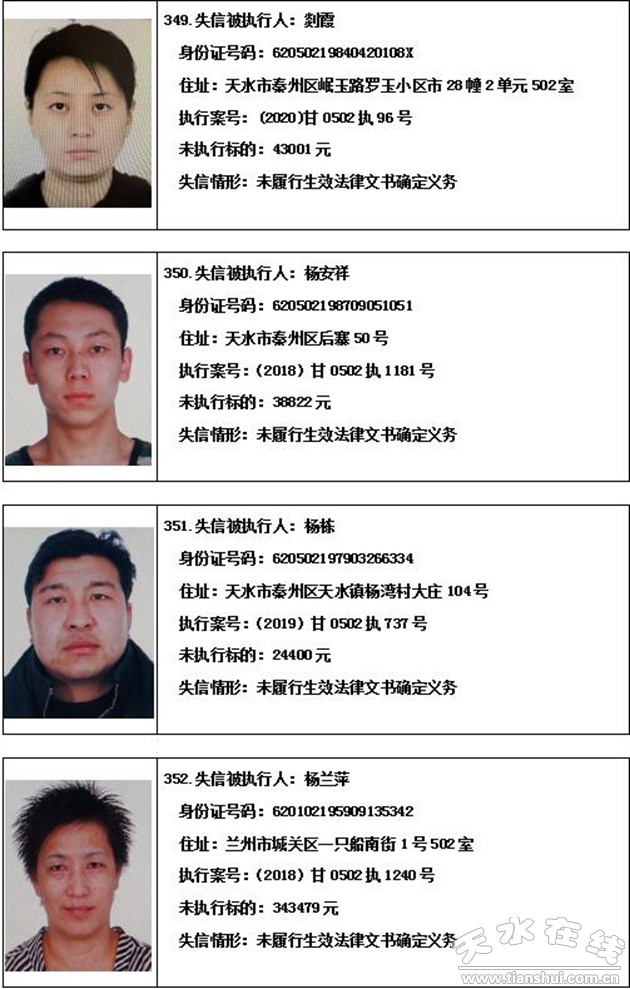 為進(jìn)一步制裁規(guī)避執(zhí)行行為,保障勝訴當(dāng)事人的合法權(quán)益,推進(jìn)社會誠信體系建設(shè),依照《中華人民共和國民事訴訟法》、《最高人民法院關(guān)于公布失信被執(zhí)行人名單信息的若干規(guī)定》等法律、司法解釋的有關(guān)規(guī)定,現(xiàn)對一批已進(jìn)入執(zhí)行程序,且尚未全部履行義務(wù)的被執(zhí)行人進(jìn)行媒體曝光,并敦促所有被執(zhí)行人自覺履行生效法律文書確定的義務(wù),通告如下: