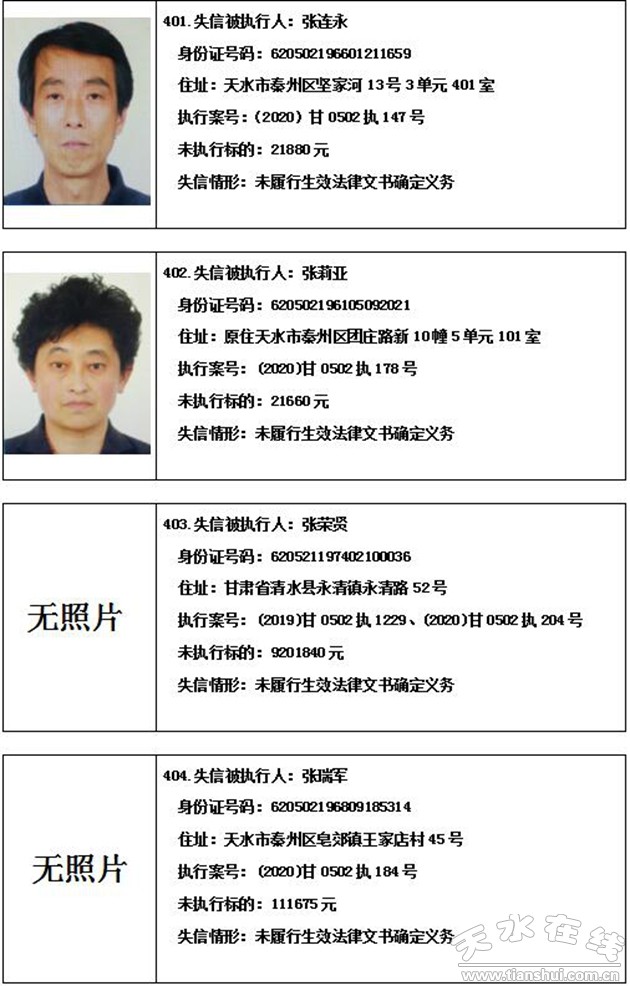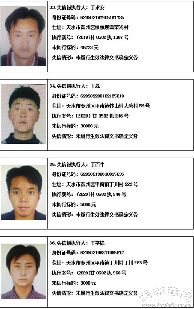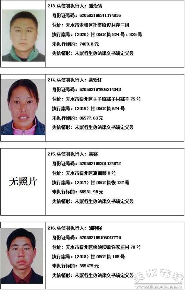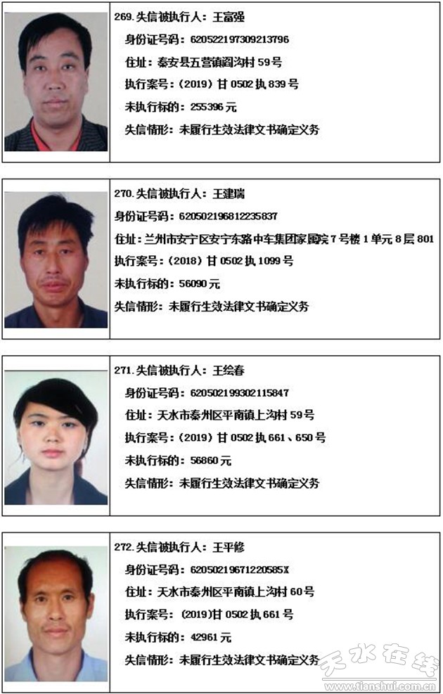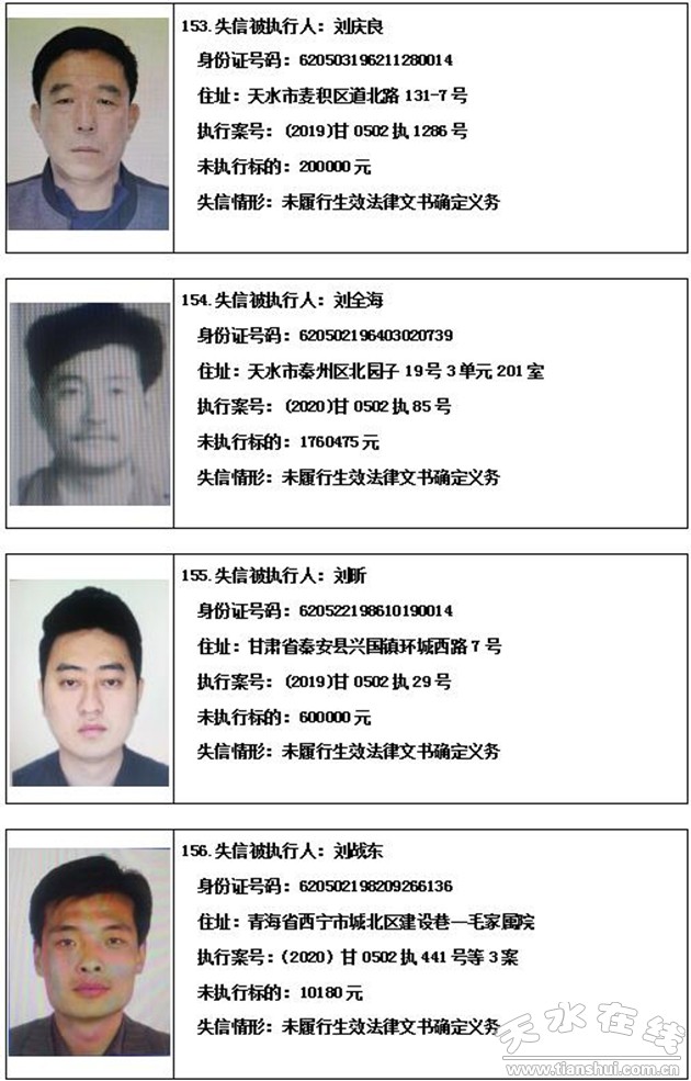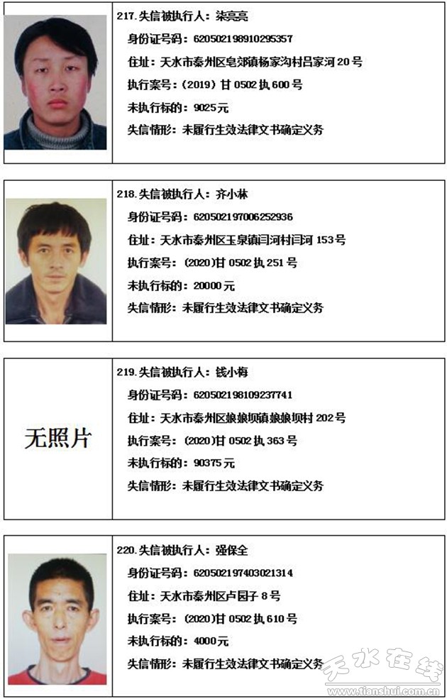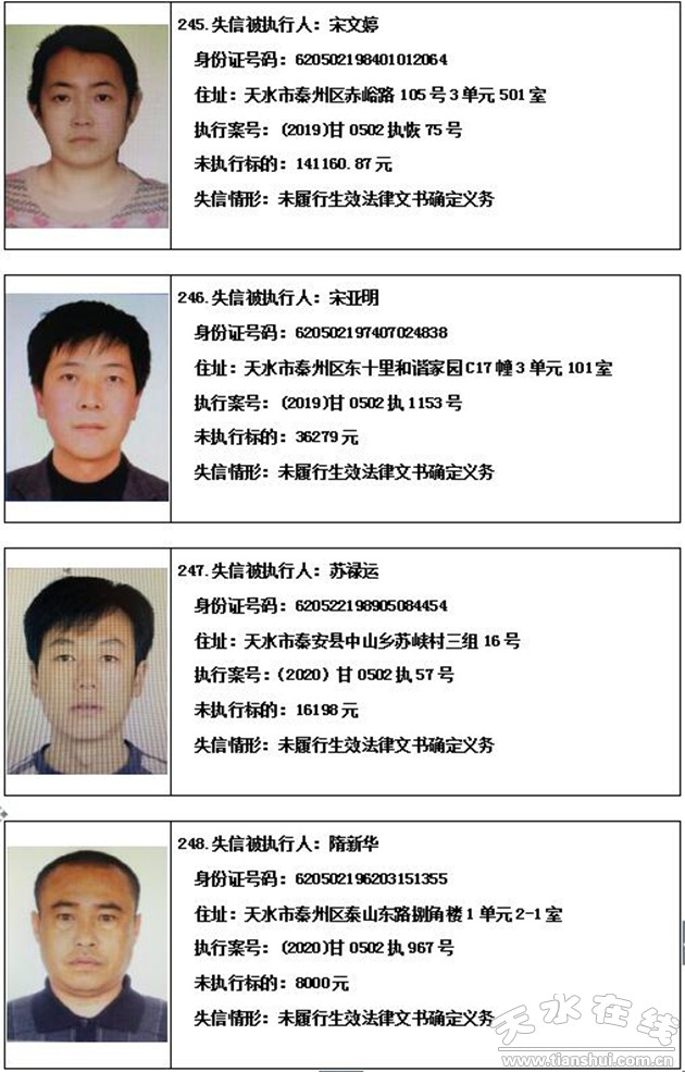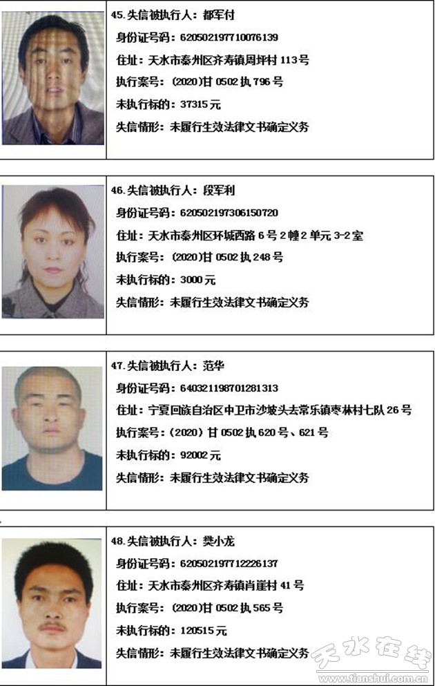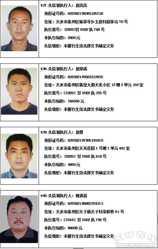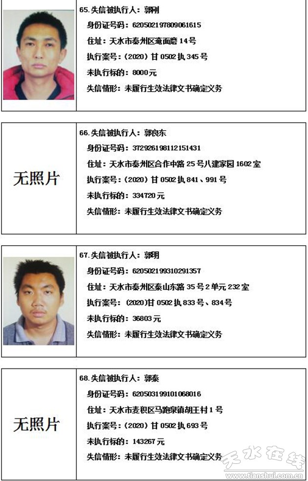 為進(jìn)一步制裁規(guī)避執(zhí)行行為,保障勝訴當(dāng)事人的合法權(quán)益,推進(jìn)社會誠信體系建設(shè),依照《中華人民共和國民事訴訟法》、《最高人民法院關(guān)于公布失信被執(zhí)行人名單信息的若干規(guī)定》等法律、司法解釋的有關(guān)規(guī)定,現(xiàn)對一批已進(jìn)入執(zhí)行程序,且尚未全部履行義務(wù)的被執(zhí)行人進(jìn)行媒體曝光,并敦促所有被執(zhí)行人自覺履行生效法律文書確定的義務(wù),通告如下: