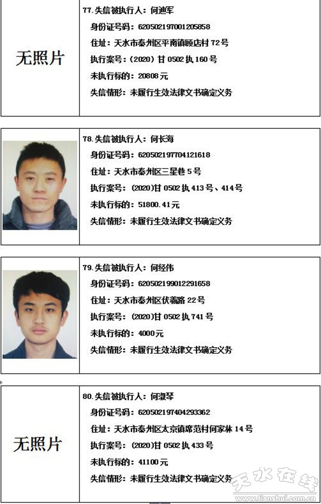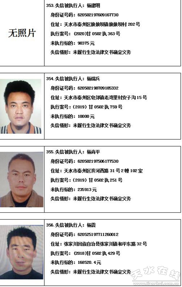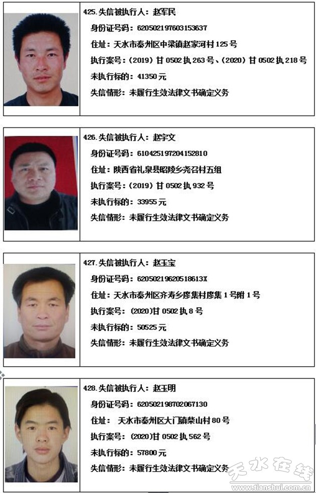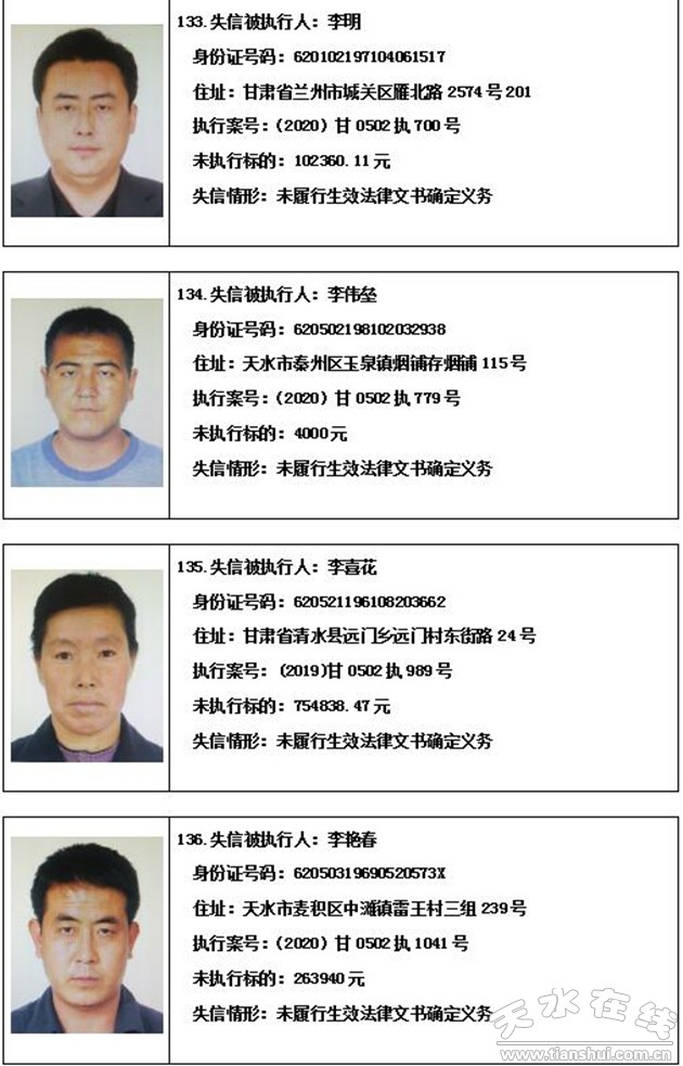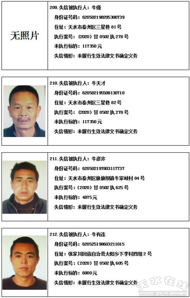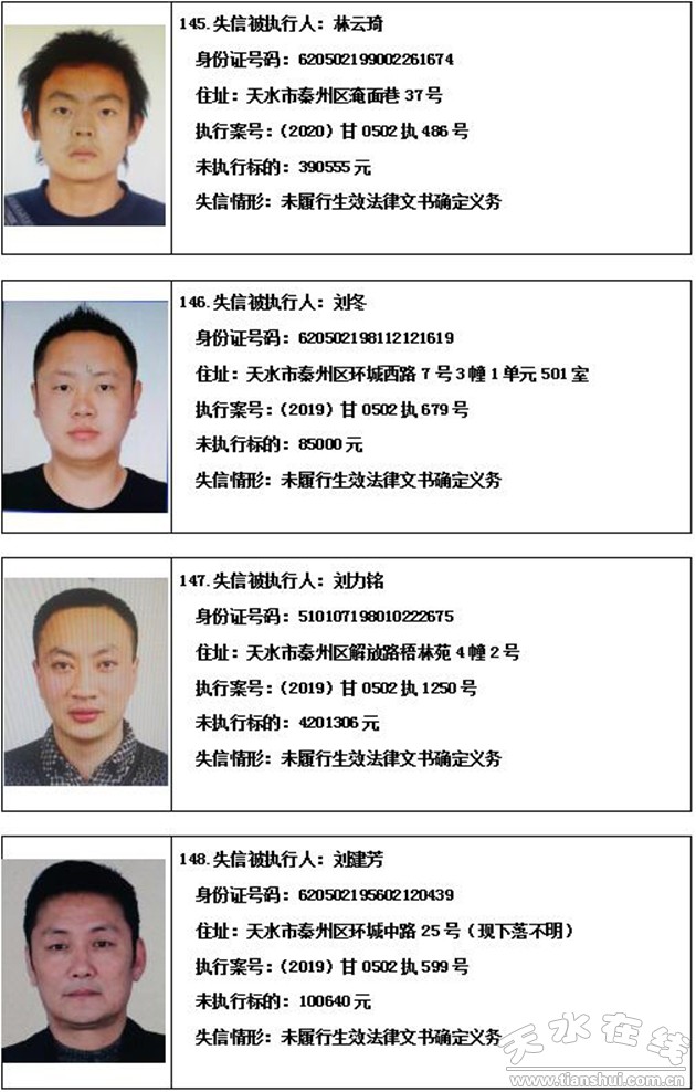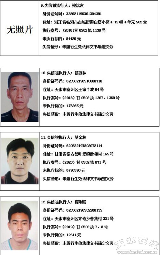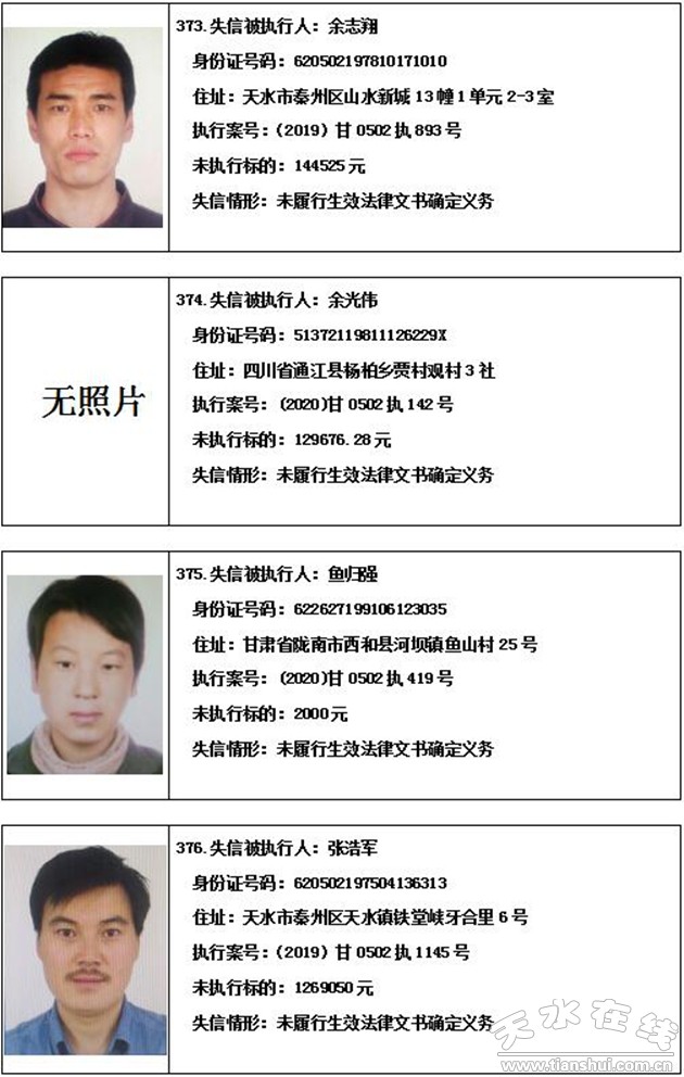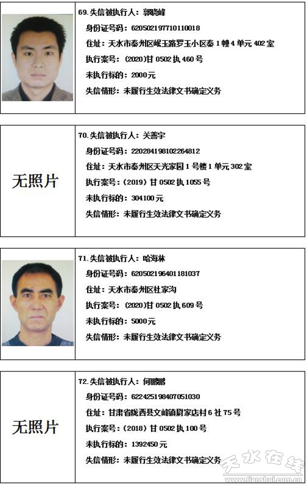 為進(jìn)一步制裁規(guī)避執(zhí)行行為,保障勝訴當(dāng)事人的合法權(quán)益,推進(jìn)社會誠信體系建設(shè),依照《中華人民共和國民事訴訟法》、《最高人民法院關(guān)于公布失信被執(zhí)行人名單信息的若干規(guī)定》等法律、司法解釋的有關(guān)規(guī)定,現(xiàn)對一批已進(jìn)入執(zhí)行程序,且尚未全部履行義務(wù)的被執(zhí)行人進(jìn)行媒體曝光,并敦促所有被執(zhí)行人自覺履行生效法律文書確定的義務(wù),通告如下: