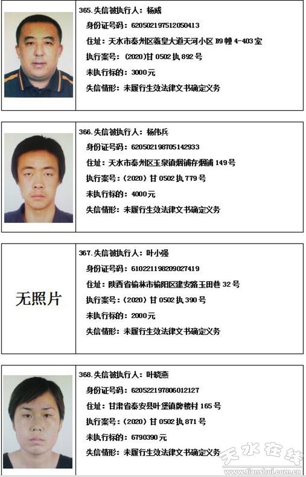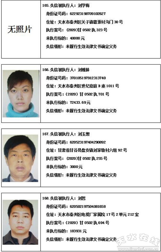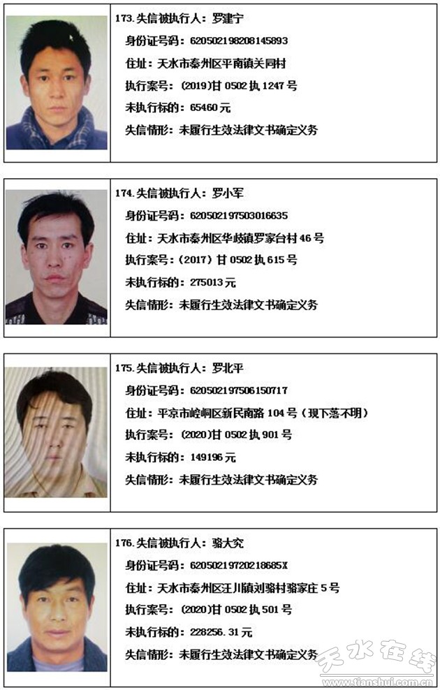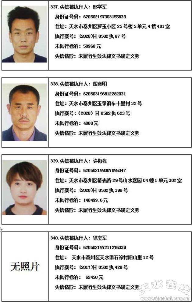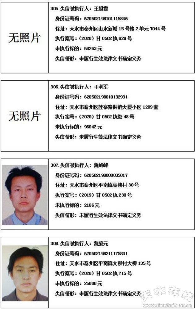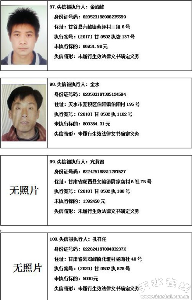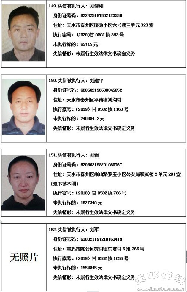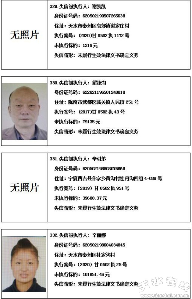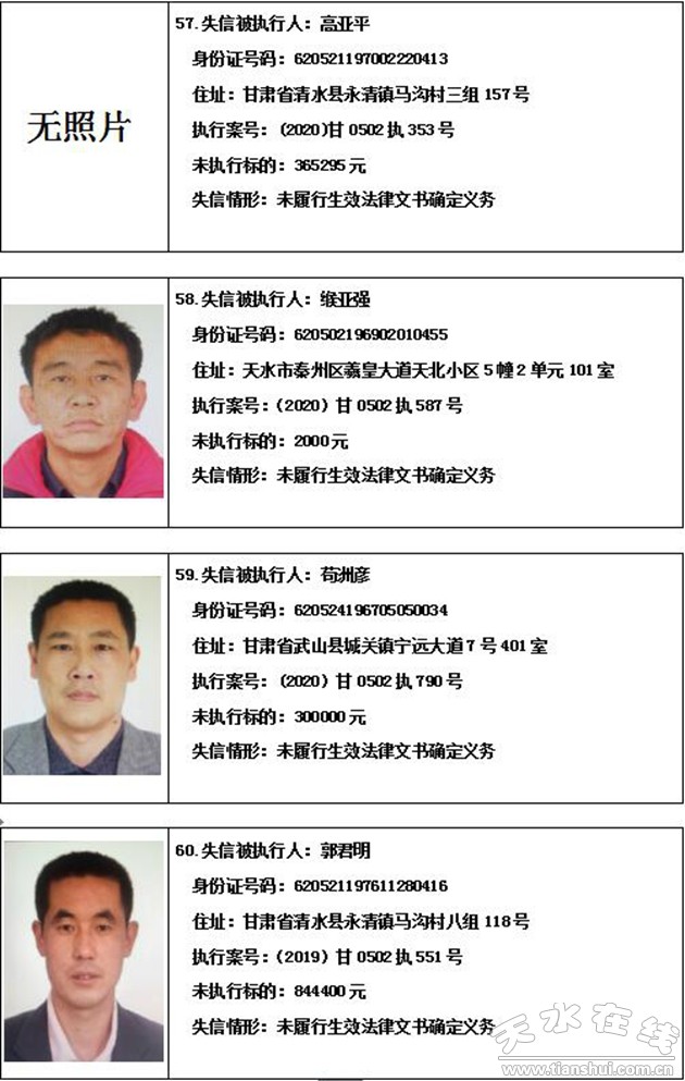 為進(jìn)一步制裁規(guī)避執(zhí)行行為,保障勝訴當(dāng)事人的合法權(quán)益,推進(jìn)社會誠信體系建設(shè),依照《中華人民共和國民事訴訟法》、《最高人民法院關(guān)于公布失信被執(zhí)行人名單信息的若干規(guī)定》等法律、司法解釋的有關(guān)規(guī)定,現(xiàn)對一批已進(jìn)入執(zhí)行程序,且尚未全部履行義務(wù)的被執(zhí)行人進(jìn)行媒體曝光,并敦促所有被執(zhí)行人自覺履行生效法律文書確定的義務(wù),通告如下: