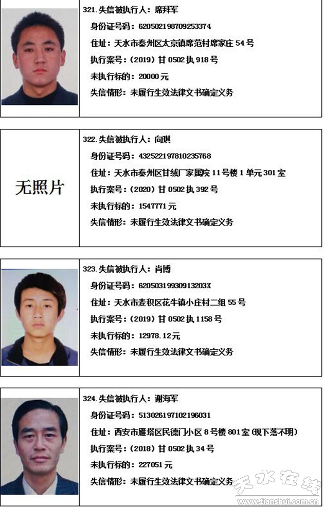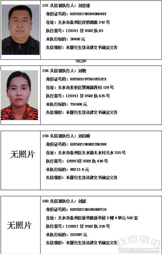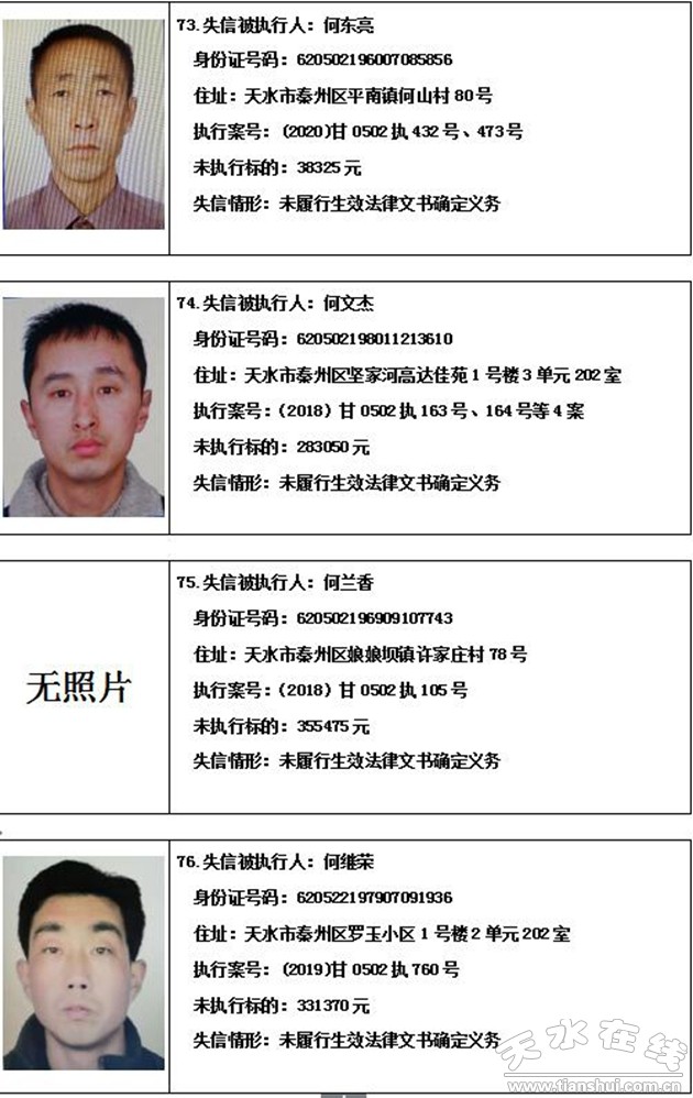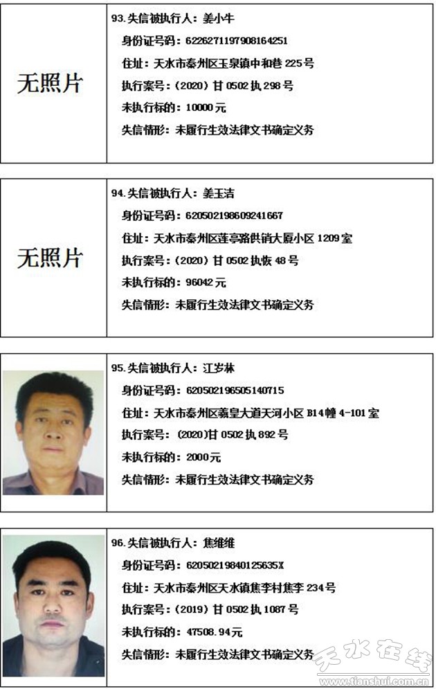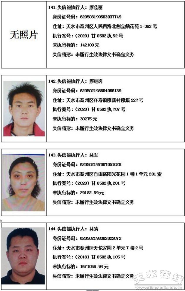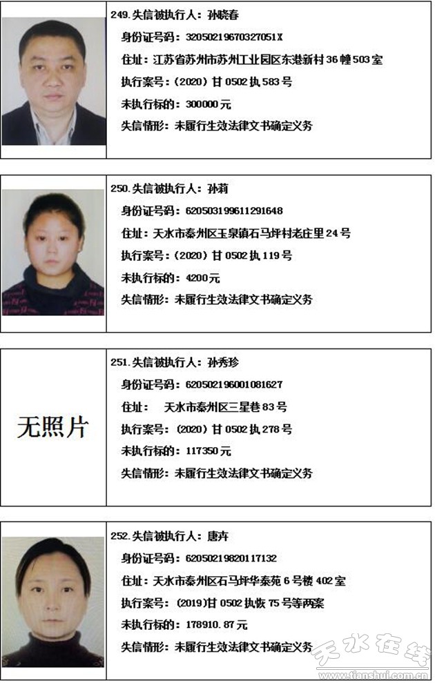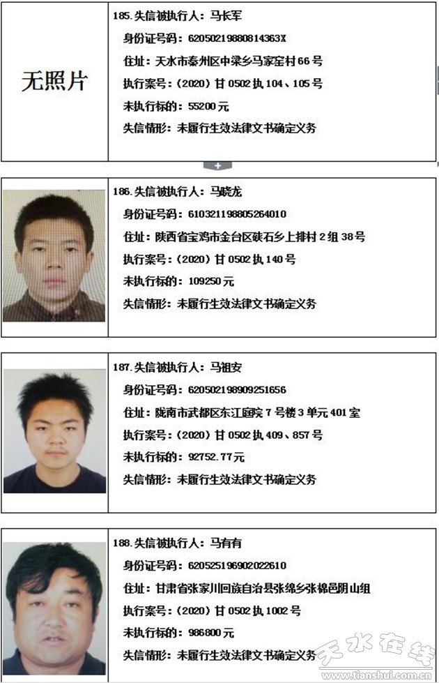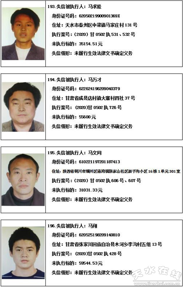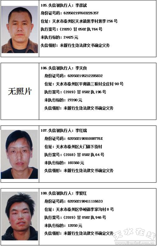 為進(jìn)一步制裁規(guī)避執(zhí)行行為,保障勝訴當(dāng)事人的合法權(quán)益,推進(jìn)社會誠信體系建設(shè),依照《中華人民共和國民事訴訟法》、《最高人民法院關(guān)于公布失信被執(zhí)行人名單信息的若干規(guī)定》等法律、司法解釋的有關(guān)規(guī)定,現(xiàn)對一批已進(jìn)入執(zhí)行程序,且尚未全部履行義務(wù)的被執(zhí)行人進(jìn)行媒體曝光,并敦促所有被執(zhí)行人自覺履行生效法律文書確定的義務(wù),通告如下: