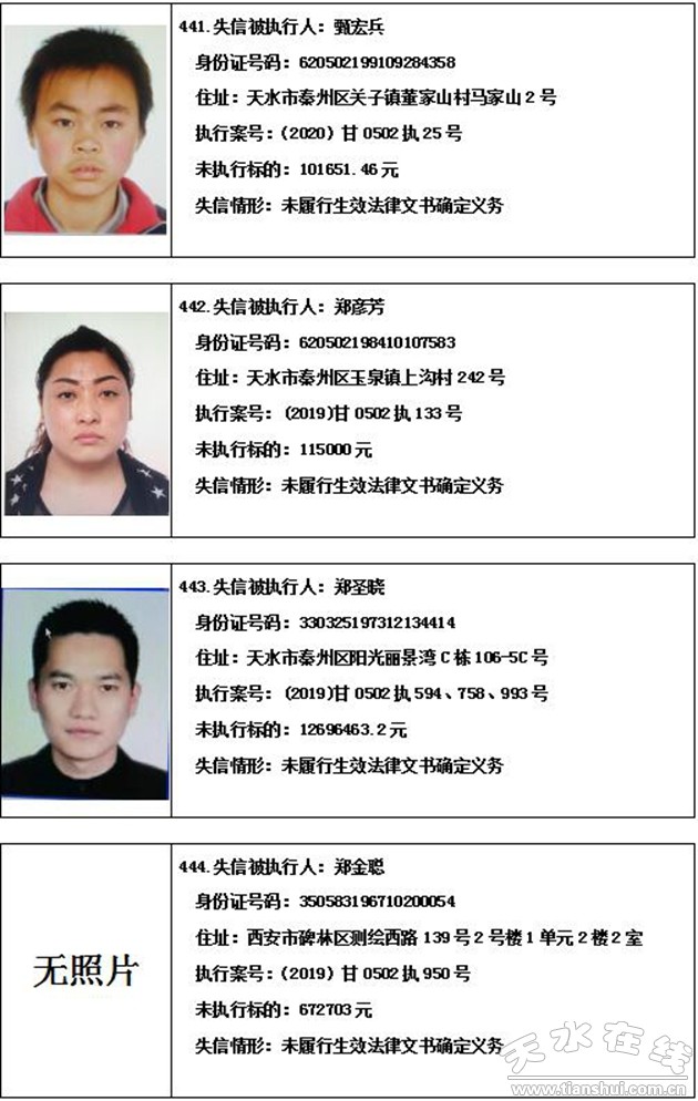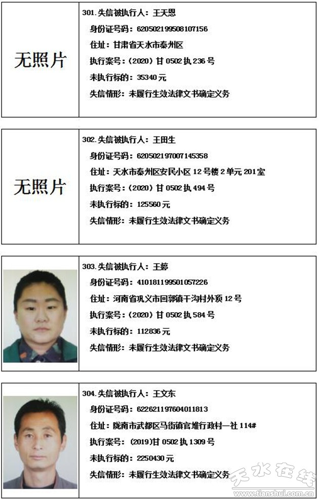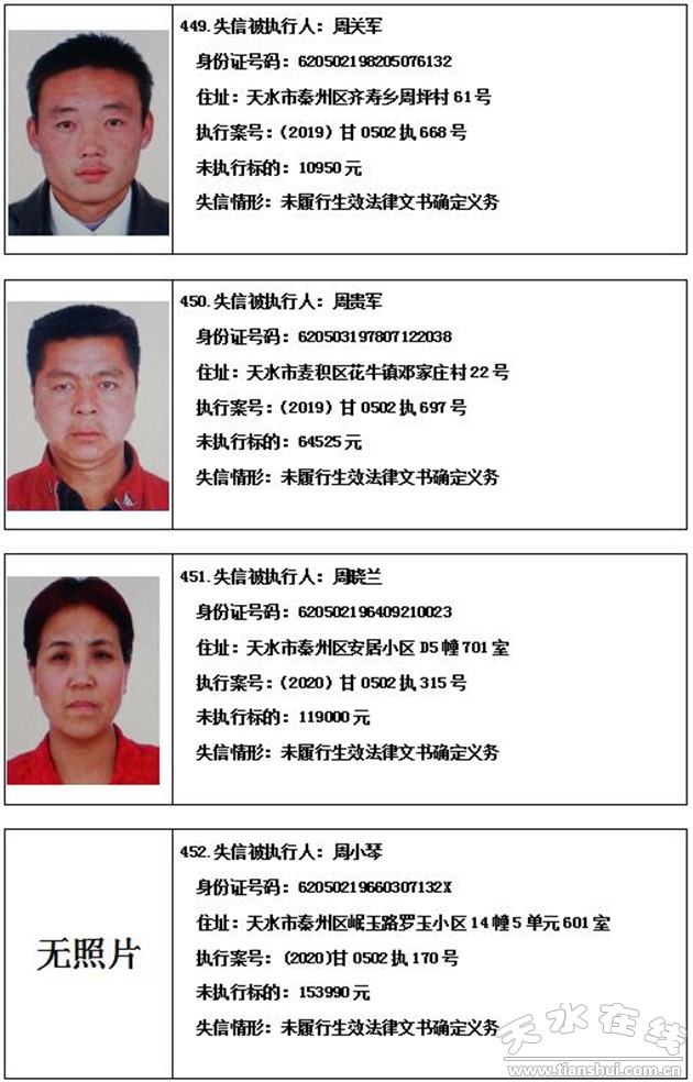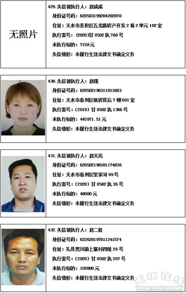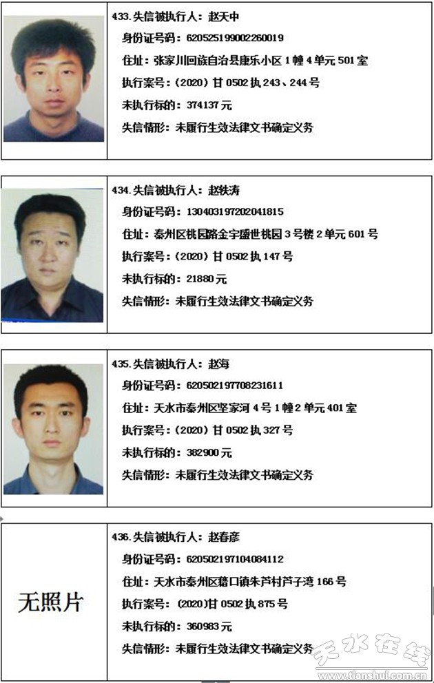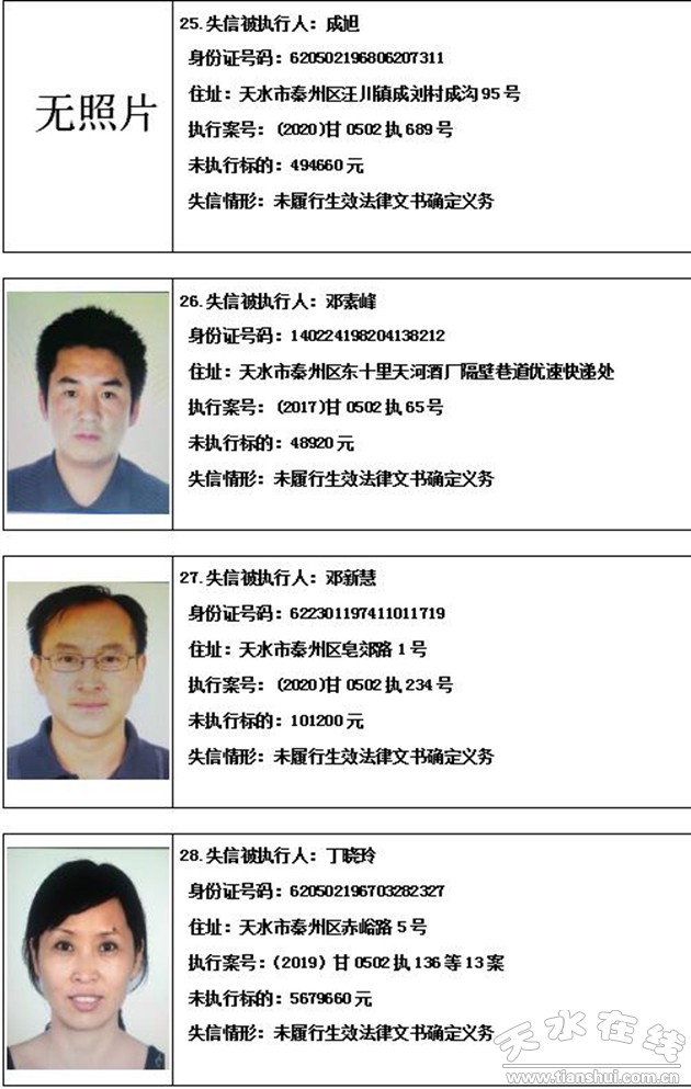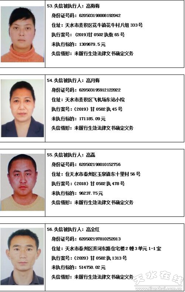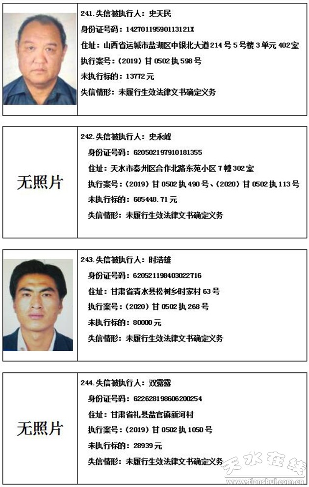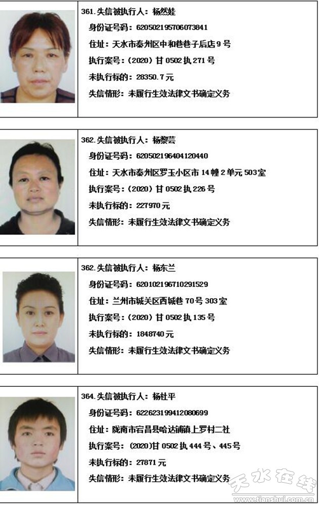 為進(jìn)一步制裁規(guī)避執(zhí)行行為,保障勝訴當(dāng)事人的合法權(quán)益,推進(jìn)社會誠信體系建設(shè),依照《中華人民共和國民事訴訟法》、《最高人民法院關(guān)于公布失信被執(zhí)行人名單信息的若干規(guī)定》等法律、司法解釋的有關(guān)規(guī)定,現(xiàn)對一批已進(jìn)入執(zhí)行程序,且尚未全部履行義務(wù)的被執(zhí)行人進(jìn)行媒體曝光,并敦促所有被執(zhí)行人自覺履行生效法律文書確定的義務(wù),通告如下: