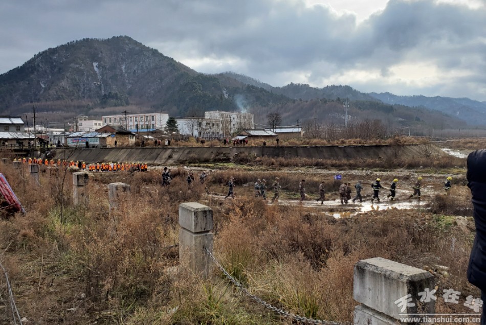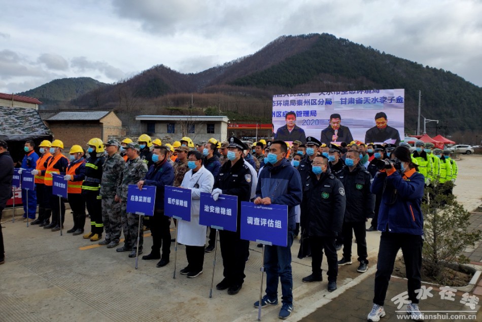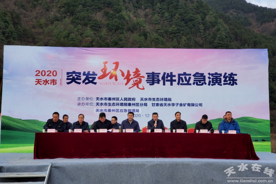 此次演練是模擬現(xiàn)場位于娘娘壩鎮(zhèn)甘肅省天水李子金礦有限公司尾礦干堆場,因山洪造成壩坡局部塌方,尾砂泄露,進入河流,對周邊村莊造成污染。