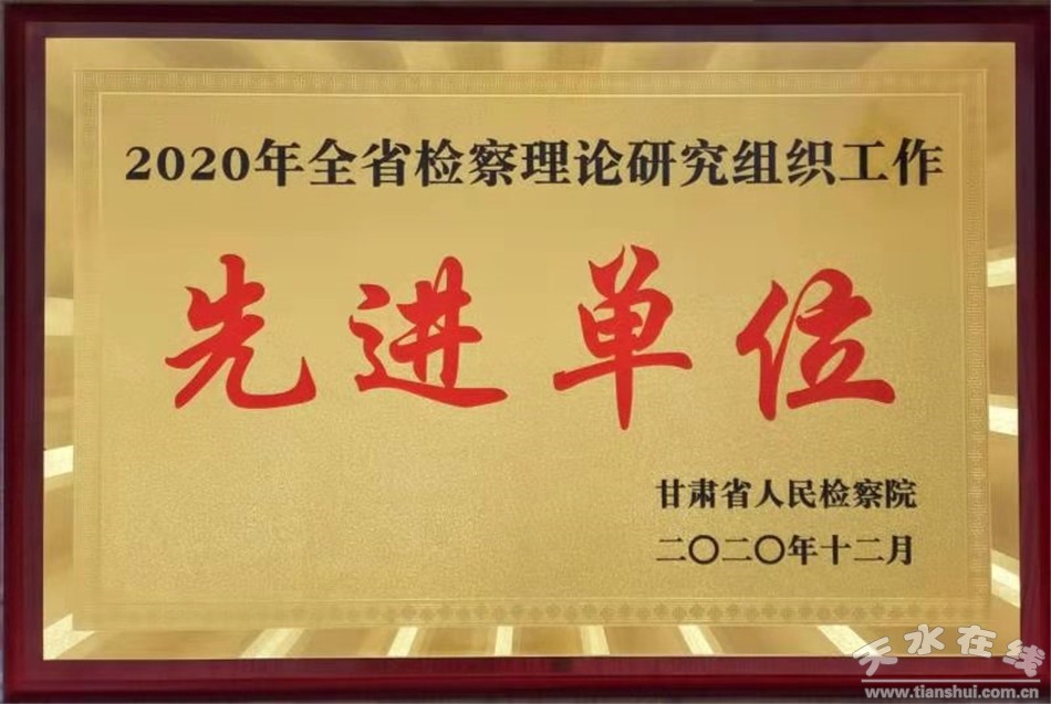 秦州區(qū)融媒體中心1月8日訊 1月8日,甘肅省人民檢察院召開2020年全省檢察機(jī)關(guān)檢察理論研究年會暨法律政策研究工作座談會,秦州區(qū)人民檢察院被評為“2020年度全省檢察理論研究組織工作先進(jìn)單位”,4篇論文分獲年會論文評選活動二、三等獎和優(yōu)秀獎,年會獲獎?wù)撐墓?0篇。