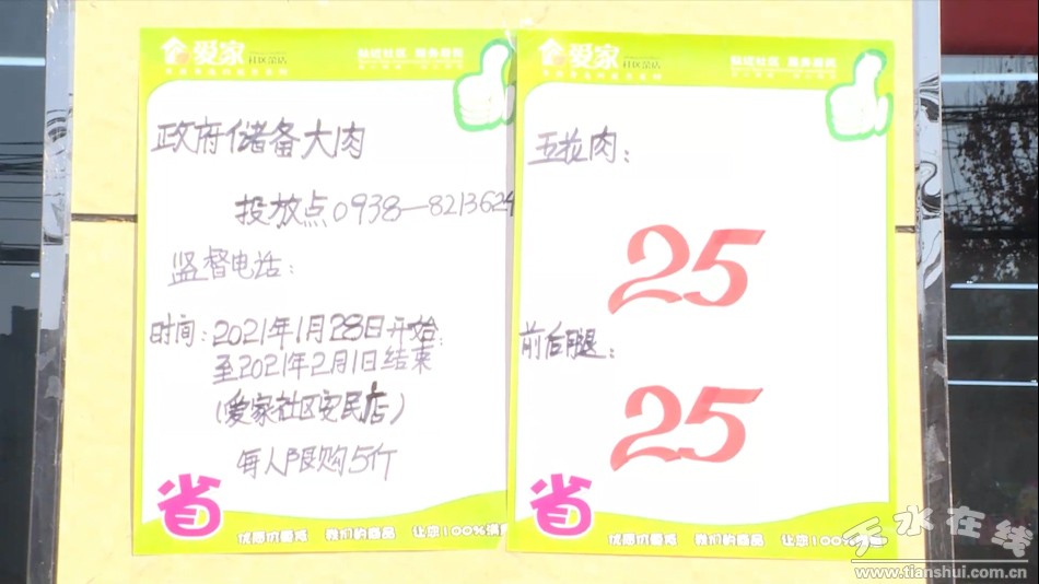 據(jù)了解,此次投放的政府儲(chǔ)備肉,均是來(lái)自秦州區(qū)益康屠宰場(chǎng)的鮮肉。全區(qū)共在城區(qū)設(shè)置投放網(wǎng)點(diǎn)10個(gè),各投放網(wǎng)點(diǎn)設(shè)置“政府儲(chǔ)備蔬菜投放點(diǎn)”、“政府儲(chǔ)備豬肉銷(xiāo)售點(diǎn)”等標(biāo)牌,投放的大肉實(shí)行明碼標(biāo)價(jià),銷(xiāo)售價(jià)格不高于每斤25元。