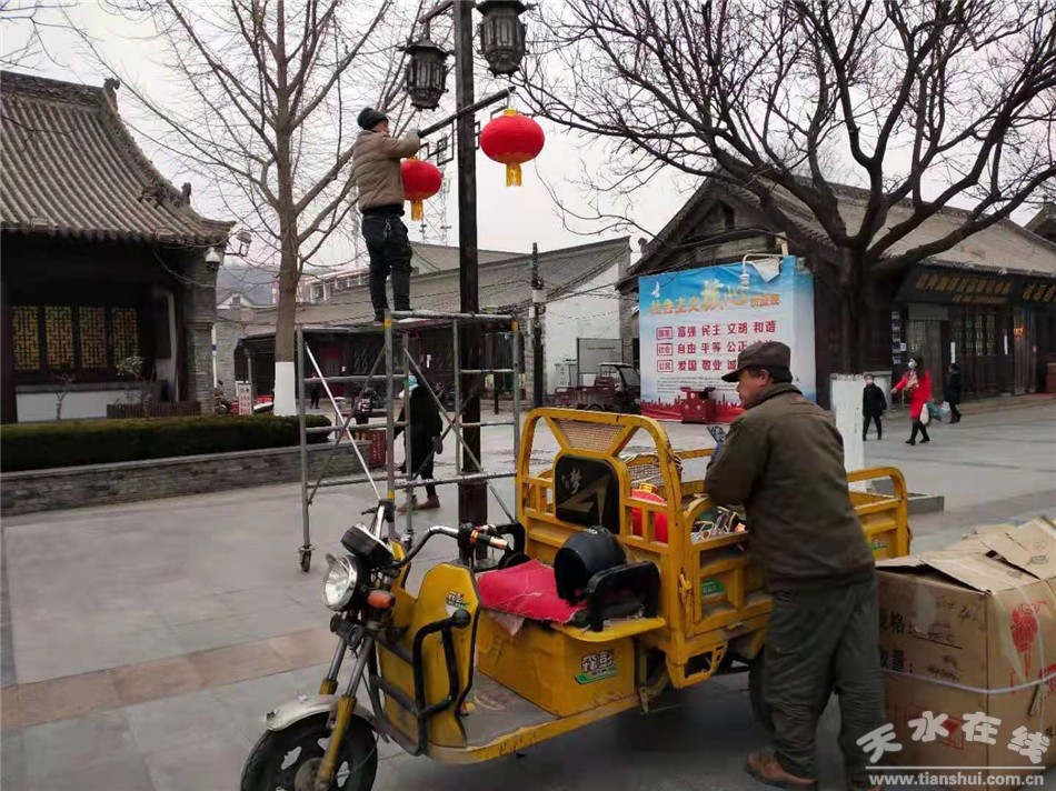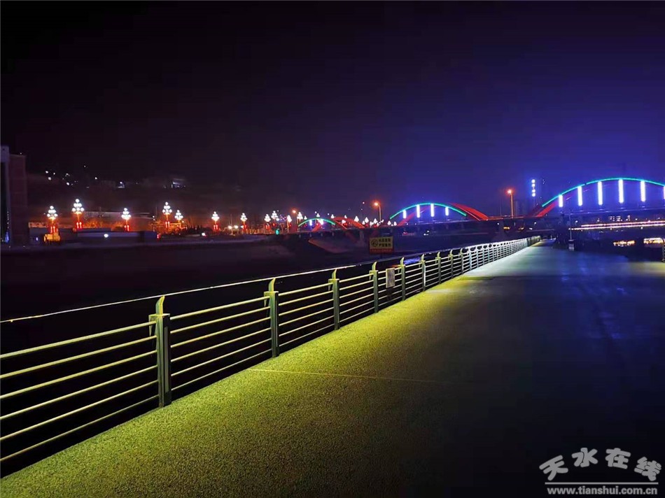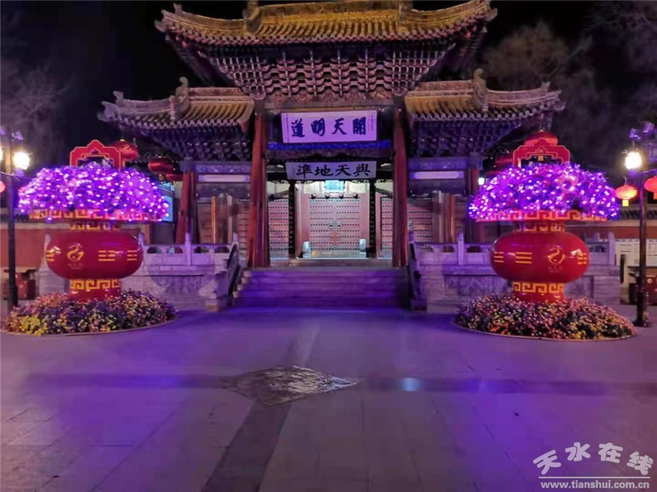美化亮化工程按照各個城市公共區(qū)域不同的特色開展,在伏羲城廣場,重點圍繞區(qū)域景觀,以建筑環(huán)境為背景,在仿古長廊、街道兩旁懸掛大燈籠100個,小燈籠50個,陳設(shè)4米高的彩燈花籃2個,6米高的彩燈花籃2個,為市民呈現(xiàn)流光溢彩、華美紛呈的視覺效果。在中華東西路步行街和龍城廣場,主干道路兩旁和廣場周邊全部掛起336個燈籠,懸掛1.5米的燈籠14個,向市民表達著新年美好的祝福,公共區(qū)域內(nèi)處處洋溢著濃濃的年味。在天水湖和藉河風(fēng)情線沿線,維修更換庭院燈、投光燈、高低燈、地?zé)簟⑴_階燈、線條燈等各類照明等425盞,安裝網(wǎng)片亮化燈300平米,LED燈帶253米,確保湖區(qū)及風(fēng)情線亮燈率達100%,全方位打造秩序更好、環(huán)境更美、形象更佳的天水市城市名片。在成紀(jì)兒童公園維修高桿燈、草坪燈、花園投光燈、游樂場地?zé)舻雀黝惵窡?00余盞,安裝燈籠102套,營造整潔優(yōu)美、和諧文明、充滿生機的公園形象。