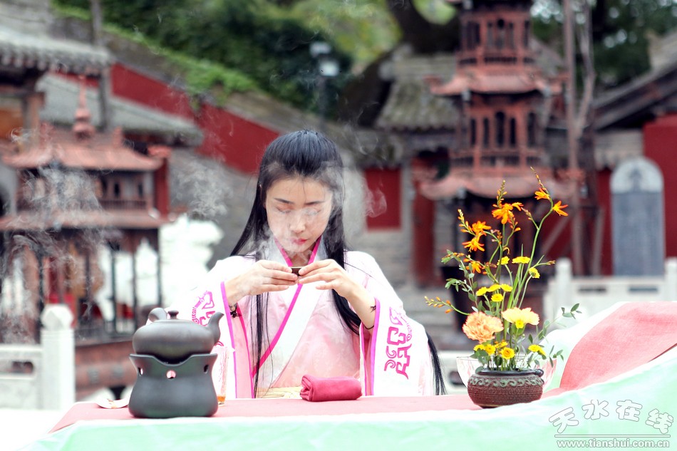 活動現(xiàn)場茶香琴韻,二者結(jié)合,天衣無縫,精彩絕倫。茶藝表演、《臥龍吟》、《秋風詞》、《枉凝眉》等獨奏、合奏曲目輪番上演,琴、簫、塤等古典樂器合奏一堂,不絕于耳,為現(xiàn)場游客帶來非一般的感受。