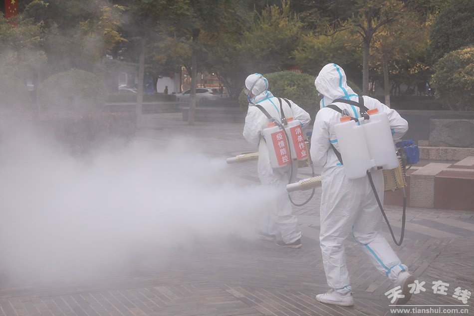 秦州區(qū)融媒體中心10月26日訊 (記者 樊雪。閳(jiān)決遏制新型冠狀病毒疫情蔓延,保障人民群眾生命安全和身體健康,10月26日上午,秦州區(qū)采用灑水車、小型高壓沖洗車及電動(dòng)噴霧器等設(shè)備對(duì)城區(qū)龍城廣場、天水一中、天水汽車站等公共區(qū)域開展疫情防控集中消殺,堅(jiān)決打好疫情防控“阻擊戰(zhàn)”,全力守護(hù)好人民群眾生命安全和身體健康。