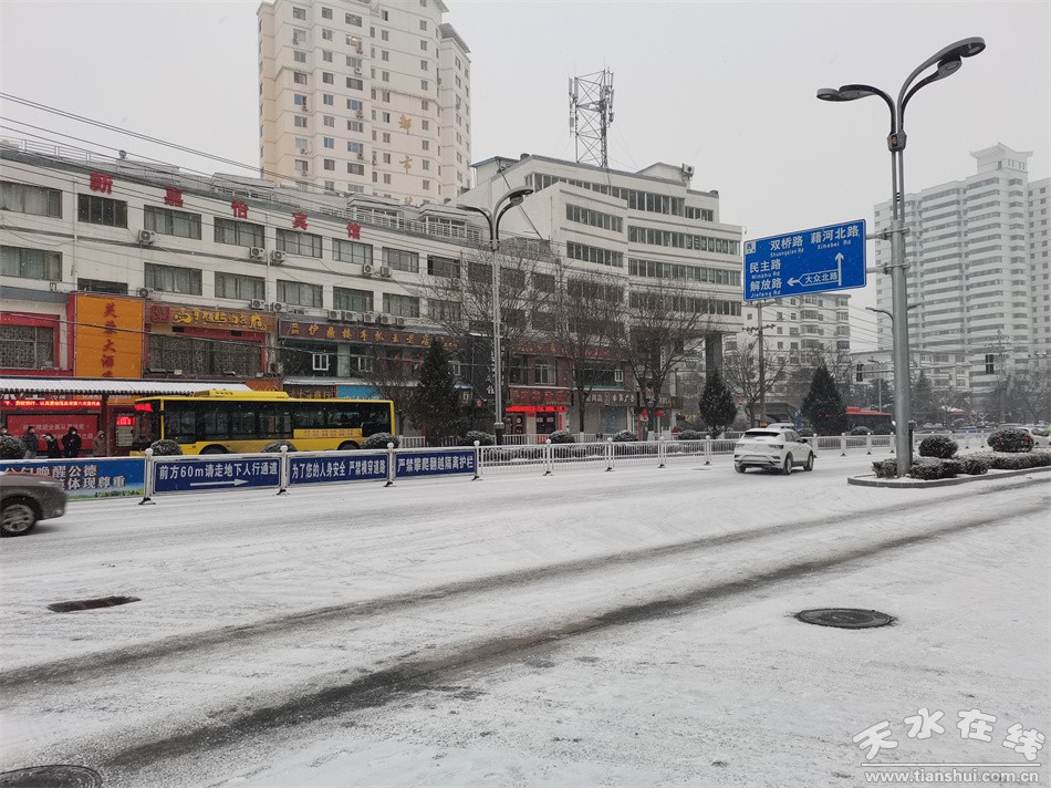 7日一大早,降雪還在繼續(xù),紛紛揚揚的雪花將整個秦州城點綴得銀裝素裹,飄飄灑灑的雪花給秦州人民的虎年春節(jié)增添了幾分靚麗的色彩,市區(qū)的降雪在中午逐漸停止。