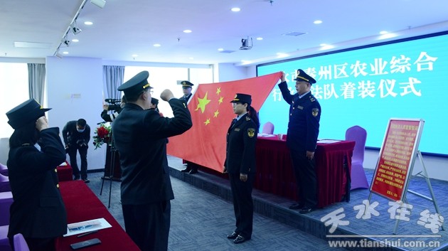 儀式上,宣讀了《秦州區(qū)農(nóng)業(yè)綜合行政執(zhí)法人員著裝管理暫行規(guī)定》,全體執(zhí)法人員面向國(guó)旗進(jìn)行了莊嚴(yán)的宣誓。