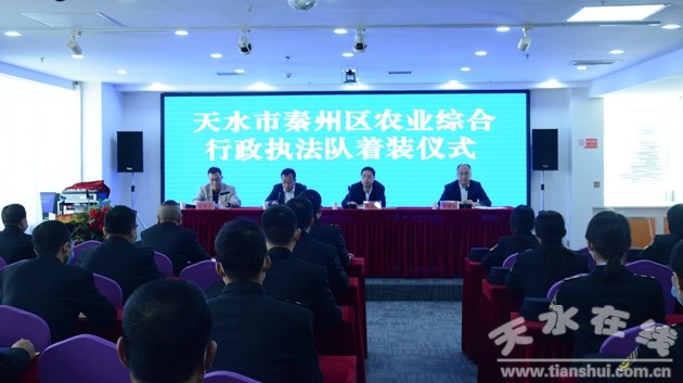 為進(jìn)一步推進(jìn)依法行政,加強(qiáng)隊(duì)伍正規(guī)化建設(shè)、樹(shù)立綜合行政執(zhí)法隊(duì)伍的良好形象,5月9日,秦州區(qū)農(nóng)業(yè)綜合行政執(zhí)法隊(duì)執(zhí)法人員著裝儀式舉行。秦州區(qū)委副書記張奎喜,天水市農(nóng)業(yè)農(nóng)村局二級(jí)調(diào)研員馬國(guó)武出席著裝儀式并講話。
