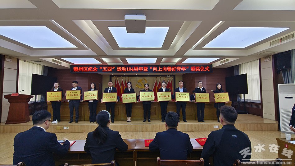 頒獎儀式上表彰了“向上向善好青年”代表、“五四紅旗團委、團支部”代表、優(yōu)秀共青團干部、團員代表,并為新成立的秦州區(qū)青年創(chuàng)業(yè)就業(yè)聯(lián)盟、秦州區(qū)青少年詩歌學會、龍城天水漢服社團授牌,優(yōu)秀青年代表李凡作了發(fā)言。