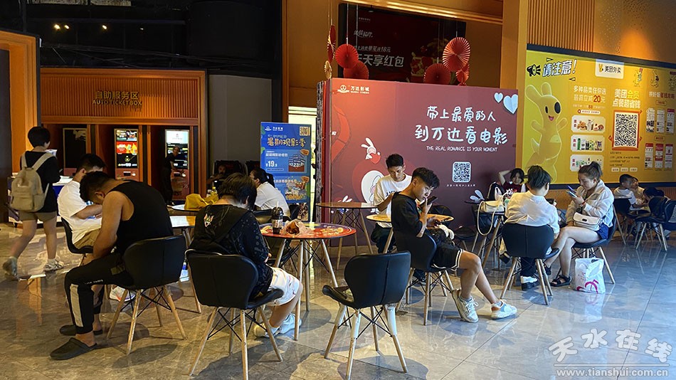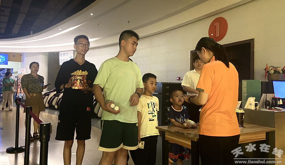 記者在秦州區(qū)多家影院看到,大廳內(nèi)人頭攢動(dòng),熱鬧非凡。影院門口、過道兩旁擺滿了暑期檔新影片宣傳海報(bào),電子大屏上循環(huán)播放著預(yù)告片。