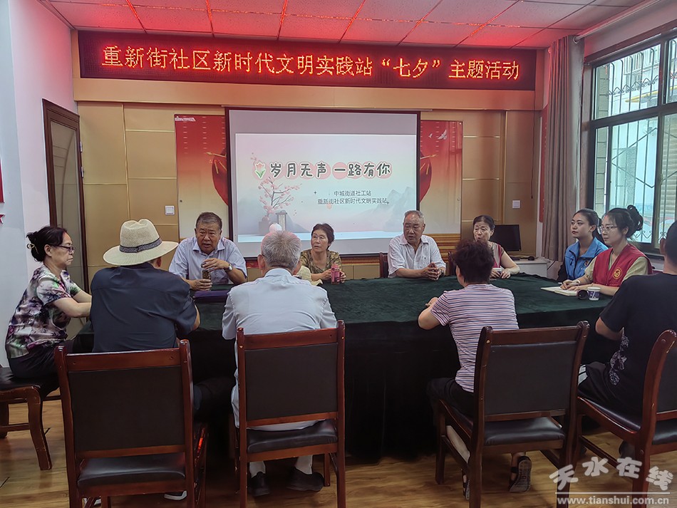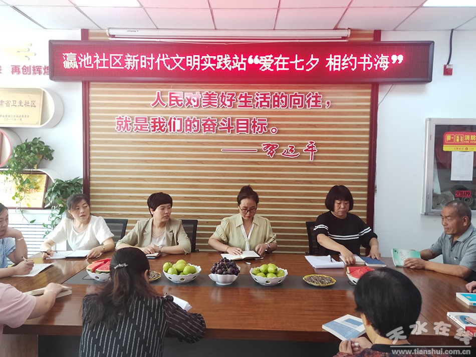 天水郡街道瀛池社區(qū)新時(shí)代文明實(shí)踐站在社區(qū)農(nóng)家書屋舉辦“愛(ài)在七夕·相約書!弊x書分享活動(dòng)。活動(dòng)以“牛郎織女”的故事展開詮釋了“七夕節(jié)”的淵源、傳說(shuō)、習(xí)俗以及傳統(tǒng)節(jié)日的文化內(nèi)涵。書海中一個(gè)個(gè)美好的愛(ài)情故事,都值得我們分享回味,F(xiàn)場(chǎng)的居民朋友講述了他們的夫妻相處之道,介紹家風(fēng)家訓(xùn),禮贊和美家庭,傳播良好家風(fēng)。