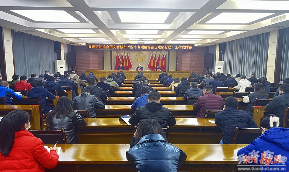 秦州區(qū)融媒體中心12月13日訊 (記者 王歧)12月12日,秦州區(qū)召開(kāi)創(chuàng)建全國(guó)文明城市“四個(gè)專項(xiàng)整治百日攻堅(jiān)行動(dòng)”工作安排會(huì),對(duì)交通秩序?qū)m?xiàng)整治工作和基礎(chǔ)設(shè)施建設(shè)專項(xiàng)整治工作進(jìn)行安排部署。區(qū)委常委、常務(wù)副區(qū)長(zhǎng)李東海,區(qū)委常委、宣傳部部長(zhǎng)胡小云,副區(qū)長(zhǎng)田小紅出席會(huì)議。