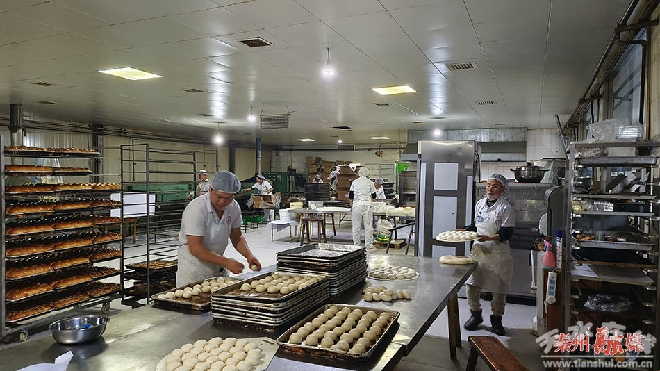 在天水隴香食品有限公司食品生產(chǎn)車間內(nèi),記者看到,工人們正在緊張忙碌著。據(jù)了解,該車間共有工人17名,主要負(fù)責(zé)生產(chǎn)雞蛋糕、老面包、蛋黃酥等產(chǎn)品,產(chǎn)品采用傳統(tǒng)工藝,均為純手工制作完成。