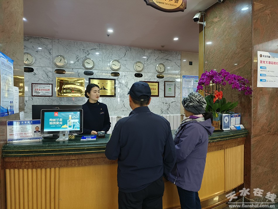 “我們酒店近期接待了將近1000多人,每天的話是處于一個房間爆滿的狀態(tài)。我們也會根據(jù)客人的喜好,推薦周邊距離酒店較近的麻辣燙店,或者離的酒店周邊較近的旅游景點(diǎn),供旅客去游玩。”天水天辰大酒店前廳經(jīng)理陳炳逸說。