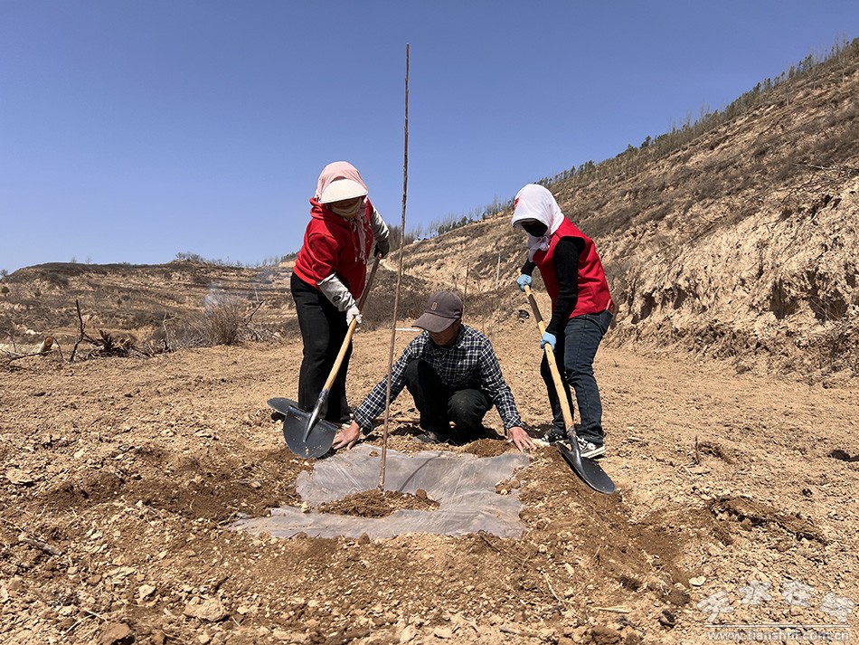 “我們?nèi)齻負責覆膜,一天能覆膜大約是60-70株樹苗。”秦州區(qū)關(guān)子鎮(zhèn)新堯村村民王玉珍說。