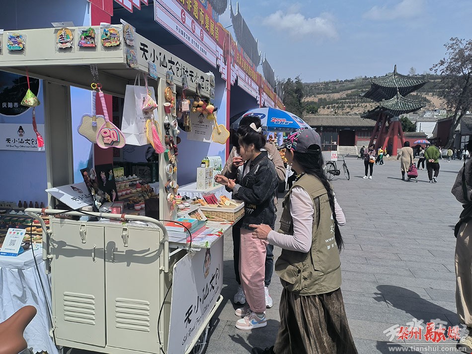 在甘肅文創(chuàng)非遺市集展上,精致小巧,價格適中的天小仙系列文創(chuàng)產(chǎn)品一經(jīng)亮相,就受到外地游客和市民的喜愛,尤其是具有地方特色的天水小吃類系列文創(chuàng)產(chǎn)品,更是以其精美的設(shè)計俘獲了不少消費者的芳心。