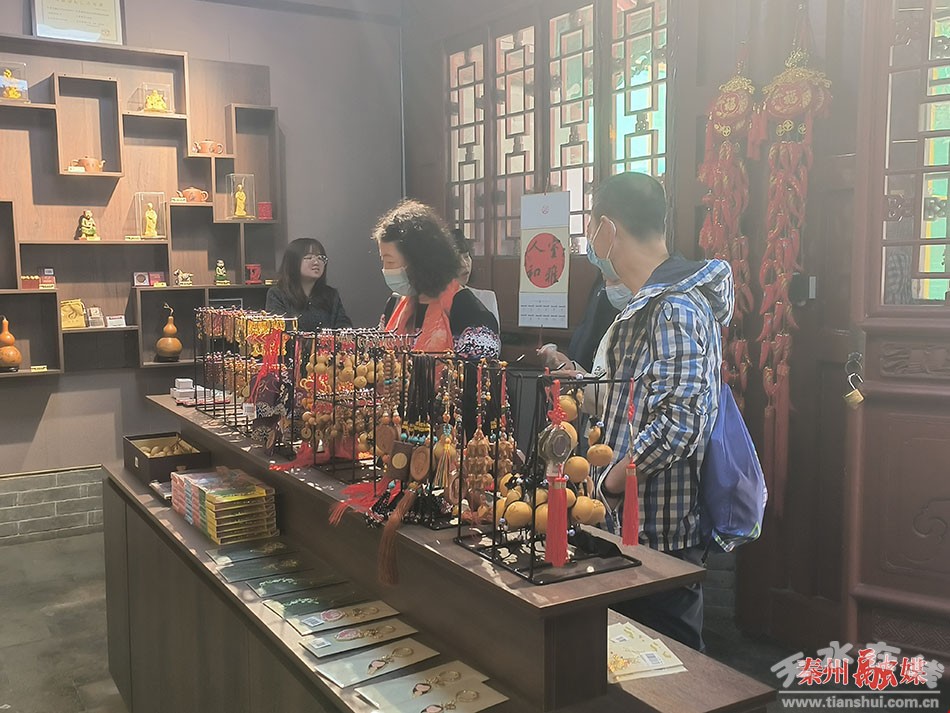 景區(qū)實體店、游客服務(wù)中心等地是文創(chuàng)產(chǎn)品的展銷窗口,今年以來,伏羲廟景區(qū)研發(fā)的多款龍年文創(chuàng)產(chǎn)品,在流量經(jīng)濟的帶動下,迎來了銷售高峰。
