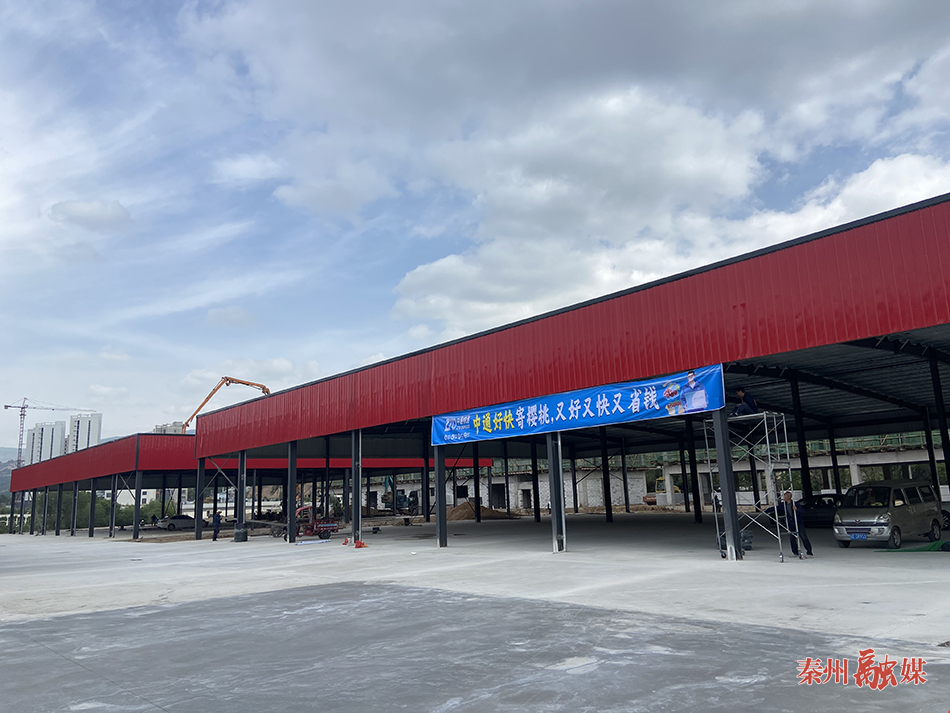 記者在新建的大櫻桃交易市場看到,鋼構(gòu)大棚、四周圍墻等基礎(chǔ)配套設(shè)施已經(jīng)完成,施工人員正在對場地硬化、管網(wǎng)鋪設(shè)等作業(yè)進(jìn)行施工,場內(nèi)綜合樓也在加班加點(diǎn)的建設(shè)當(dāng)中。