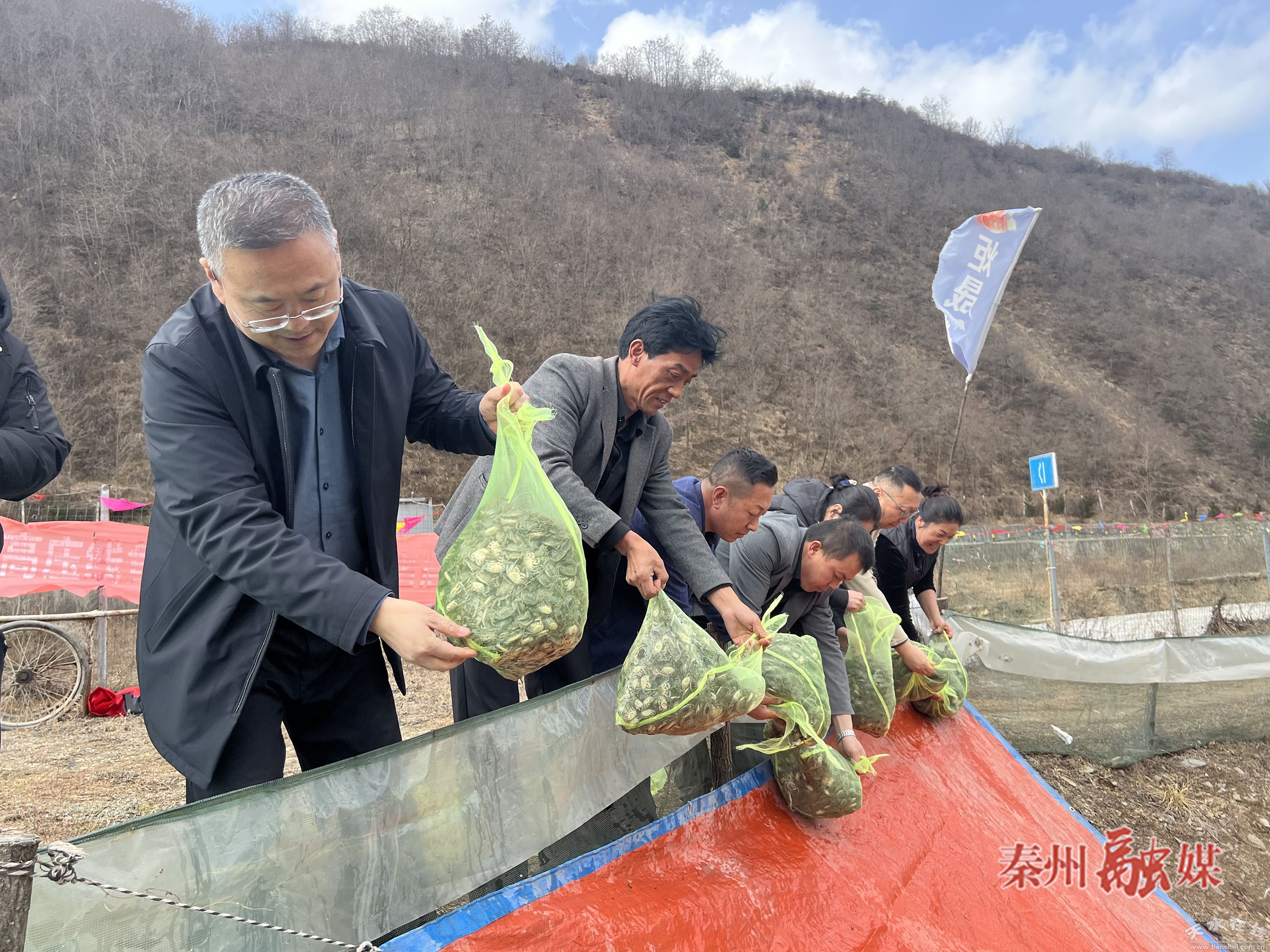 日前,記者在秦州區(qū)娘娘壩鎮(zhèn)南峪村蟹養(yǎng)殖基地看到,合作社工作人員正在給蟹塘投放今年第一批蟹苗,一只只精挑細(xì)選的蟹苗被放入水中。