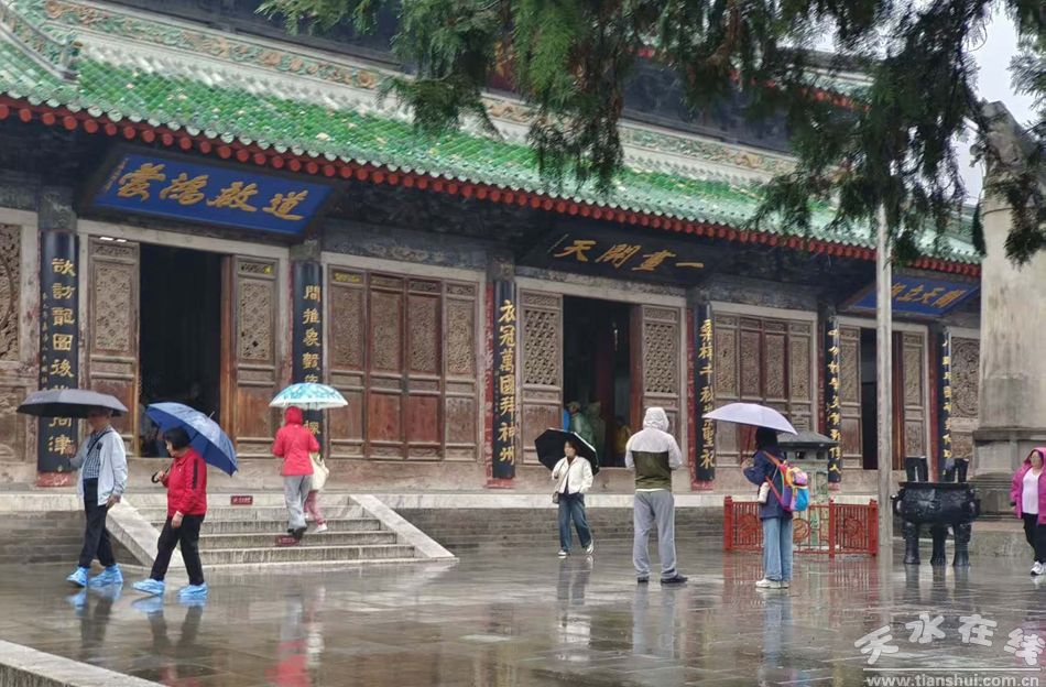 早上九點半,記者來到伏羲廟看到,眾多游客在有序排隊進場參觀。雨天的伏羲廟,更加顯肅穆莊重,古韻悠長,游客漫步其中,感受伏羲文化的博大精深。