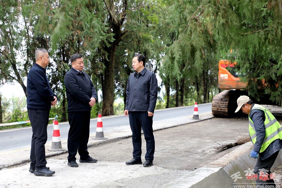 秦州區(qū)融媒體中心10月13日訊(記者 崔磊)近日,受長期降雨影響,秦州區(qū)部分鎮(zhèn)出現(xiàn)道路塌陷、巷道受損、半幅路面網(wǎng)裂等情況。10月13日,秦州區(qū)委副書記、區(qū)長王志成帶領(lǐng)區(qū)直有關(guān)部門負責人深入玉泉鎮(zhèn)開展實地調(diào)研。他強調(diào),要搶時間、補短板、強落實,以‘零傷亡’為底線,以項目治理為根本,用最快速度排查隱患、轉(zhuǎn)移群眾、修復設(shè)施,堅決守護群眾生命財產(chǎn)安全。