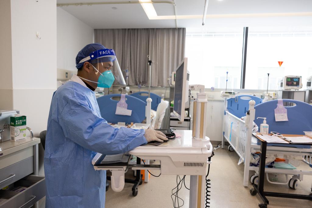 在上海交通大學(xué)醫(yī)學(xué)院附屬新華醫(yī)院,兒科急診醫(yī)生在輸入病例信息。新華社記者 金立旺 攝
