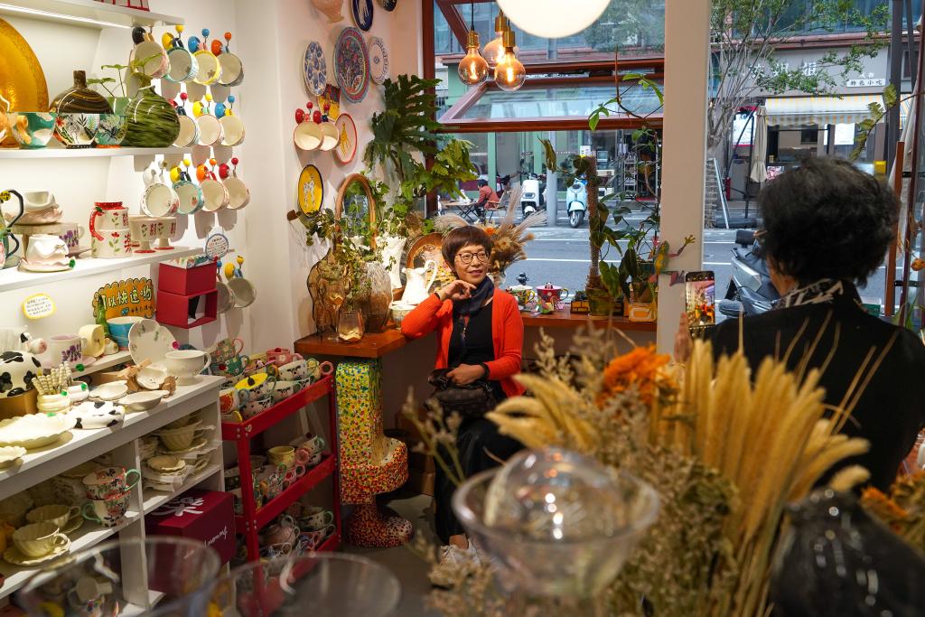 2023年10月11日,顧客在成都市武侯區(qū)玉林東路的瓷器特色小店拍照打卡。新華社記者 唐文豪 攝