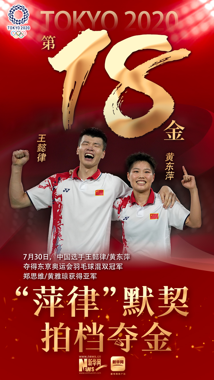 新華社東京7月30日電(記者丁文嫻、陸睿、姬燁)手臂搭在彼此肩上,王懿律右手握拳,黃東萍左手比出第一的手勢(shì)。他們贏下一場(chǎng)硬仗,在東京奧運(yùn)會(huì)羽毛球混雙決賽中2:1戰(zhàn)勝隊(duì)友鄭思維/黃雅瓊,收獲金牌。