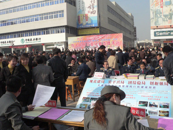 10月23日上午,天水人民廣播電臺《行風熱線》大型現(xiàn)場直播活動在市中心廣場舉行,本次活動由天水市糾風辦、天水市廣播電影電視局主辦。27個職能部門和11家熱點單位負責人走出直播間,來到廣場,本著“對等、對面、對話,交談、交流、交心”的精神,零距離與廣大群眾接觸見面,現(xiàn)場聽取大家對黨風、政風、行業(yè)作風的意見!缎酗L熱線》大型現(xiàn)場直播活動在我市和全省都是首次。