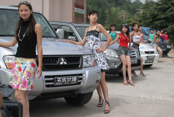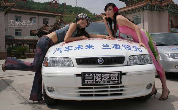 圖為6月26日第七屆CCTV超級模特大賽“金莎會杯”天水選拔賽暨2006伏羲文化旅游節(jié)禮儀模特客串車模,天水蘭凌汽車提供車輛。攝影:丁建太