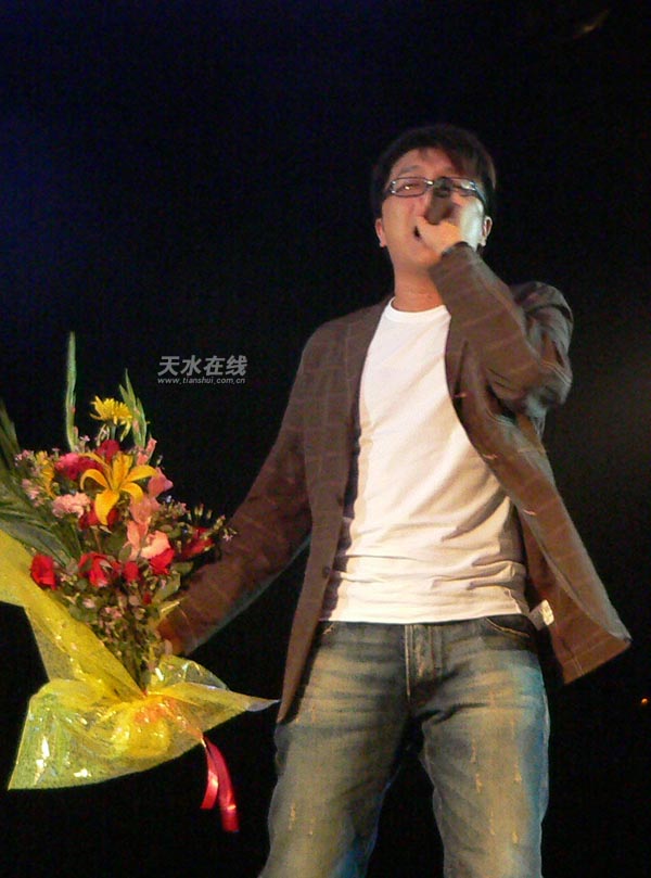 昨晚8時整,在一片歡呼聲中,臺灣歌手黃安出現(xiàn)在舞臺上,他的出現(xiàn)立刻受到了天水歌迷的熱烈歡迎,他保持了一貫的幽默和風趣。在主持節(jié)目的同時還不忘說:“這次來天水,我覺得這里山美水美,人更美,我喜歡天水的山山水水,更喜歡天水的美女們!”引得全場觀眾大笑不止。