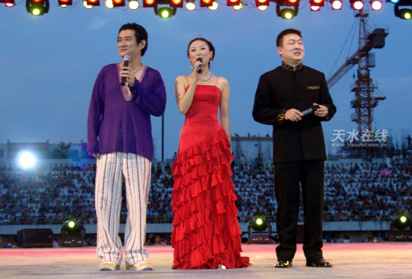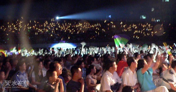 昨天,天水公祭伏羲大典之后,晚上8時“天慶之夜大型明星演唱會”在天水市南山體育場拉開帷幕。在演出現(xiàn)場,不管是陳好溫柔抒情的慢歌還是陳慧琳那配以勁歌熱舞的快 歌都讓歌迷極度瘋狂。當晚的演出讓可以容納12000人的體育館座無虛席,絢麗的舞臺效果加上眾多優(yōu)秀歌手的精彩表演,令所有到場者度過了一個難忘的夜晚。