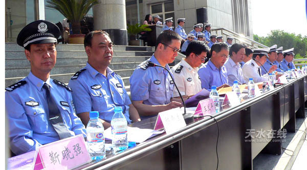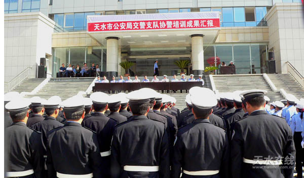 5月28日上午,天水市公安局交警支隊(duì)在市公安局交警支隊(duì)院內(nèi)舉行交通協(xié)管員培訓(xùn)成果匯報(bào)會(huì)。市委常委、政法委書記韓岱成,副市長楊維俊出席這次成果匯報(bào)會(huì)。