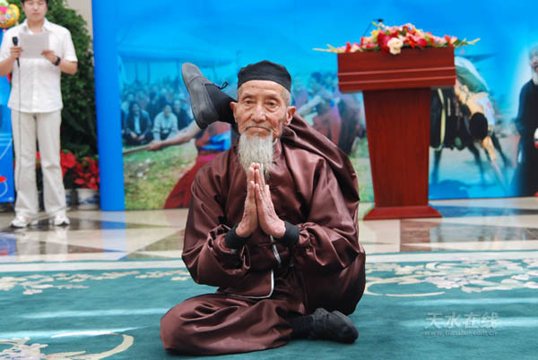 麥積區(qū)中灘鎮(zhèn)著名武術(shù)家王江生表演的柔軟童子功