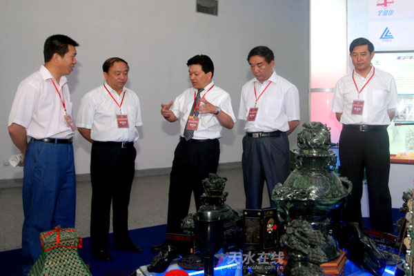 市領(lǐng)導(dǎo)們每到一處,都詳細(xì)了解各地區(qū)的產(chǎn)品展銷情況,并饒有興趣地觀看產(chǎn)品展示。在參觀我市展館時(shí),市領(lǐng)導(dǎo)對今年我市展館的設(shè)計(jì)、展品的選擇與特色給予了充分肯定,同時(shí)希望天水市善抓會展經(jīng)濟(jì)的有利時(shí)機(jī),吸取精華,乘勢而上,積極招商引資,提升企業(yè)產(chǎn)品和天水形象,使天水進(jìn)一步與全國、全世界相融,取得更大的發(fā)展。