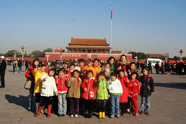 二十多名來自甘肅天水貧困山區(qū)的小學生,此行是受邀參加中央電視臺“2008 中國有我”大型文藝晚會,14日乘坐火車從當?shù)爻霭l(fā)趕赴千里到達首都北京的,其中大部分孩子沒有乘坐甚至沒有看見過火車。16日早晨,在中國之音的組織下,二十多名孩子來到天安門廣場。當站在夢想中的圣地時,孩子們異常興奮,在國旗下、在廣場上、在車上,他們情不自禁哼唱起《感恩的心》和《讓夢飛翔》等歌曲,以此表達自己激動的心情和對幫助他們實現(xiàn)夢想的人們的感激。
