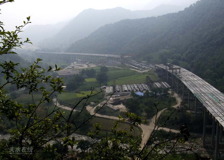 建設(shè)中的寶天高速 (攝影:田向東 配圖:天水在線)