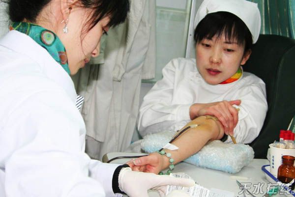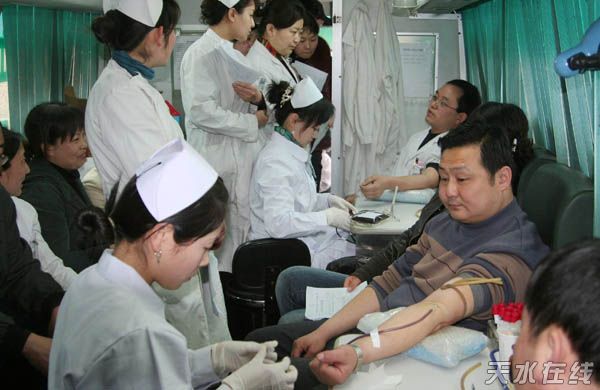 2008年3月8日上午,天水市第二人民醫(yī)院廣大干部職工集體參加無償獻血活動,為社會公益事業(yè)獻愛心,緩解我市供血緊缺的狀況。當天共有48名干部職工無償獻血共計15000余毫升。
